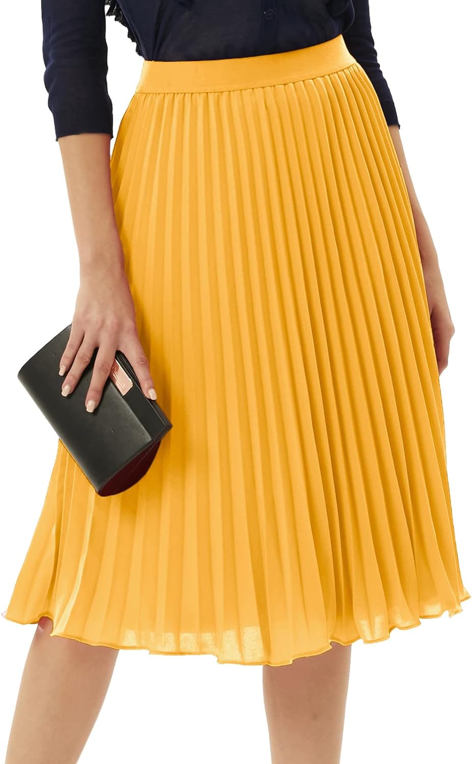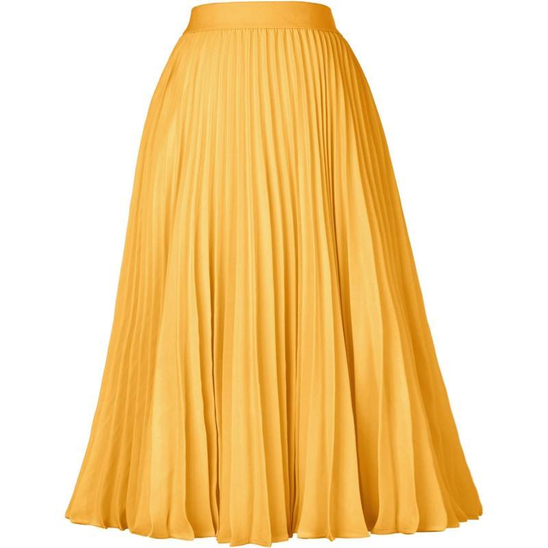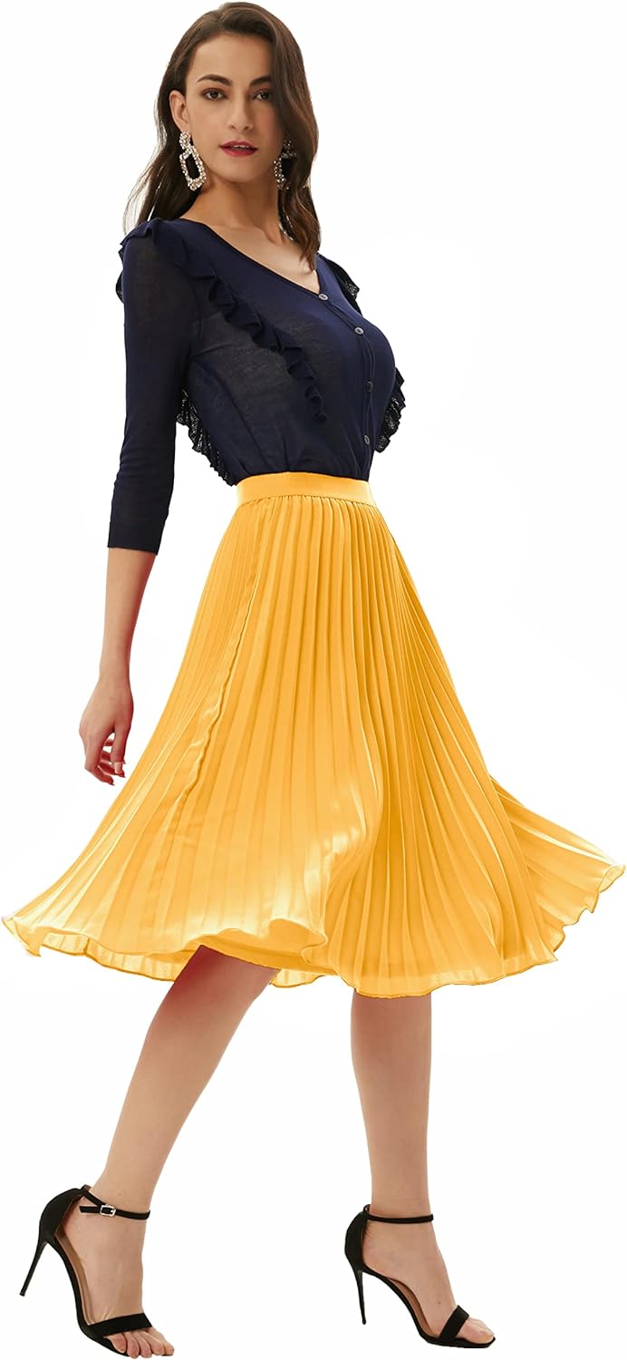 GRACE KARIN Women High Elastic Waist Pleated Chiffon Skirt Midi Swing Aline SkirtsYellow