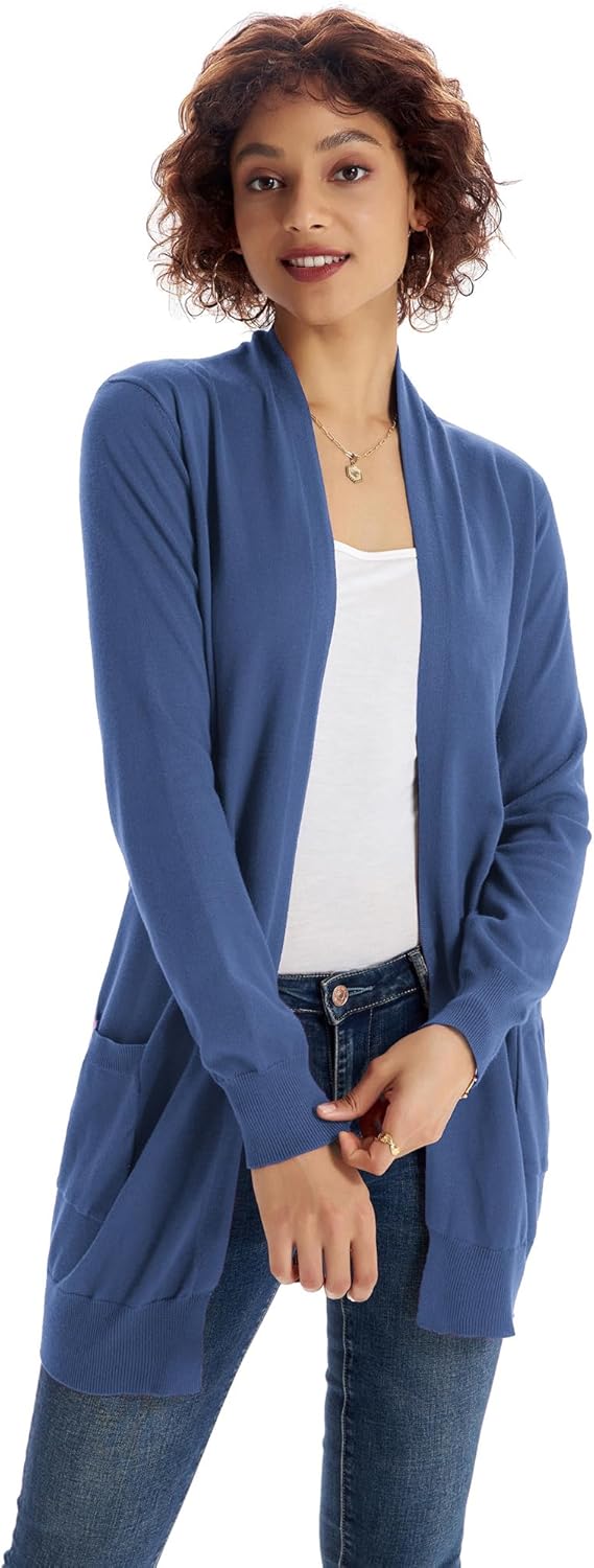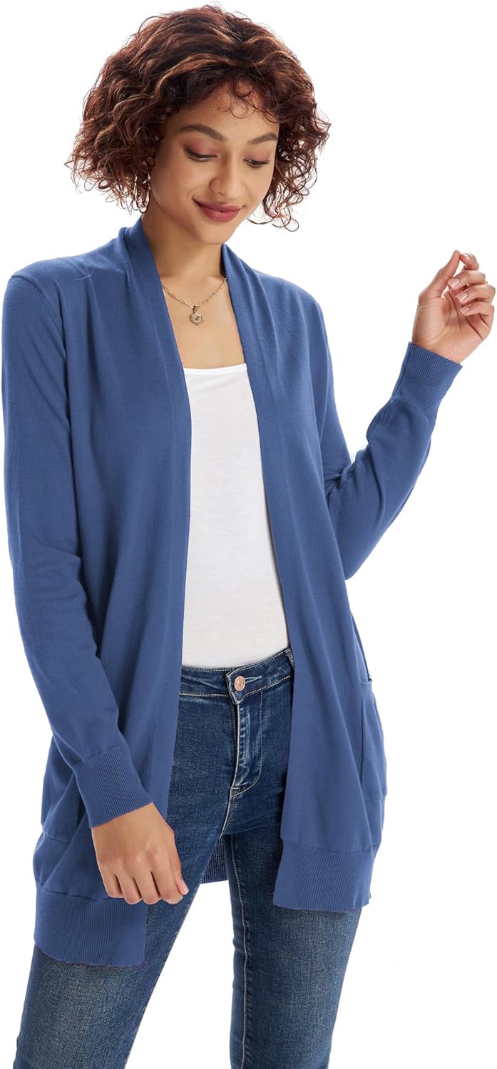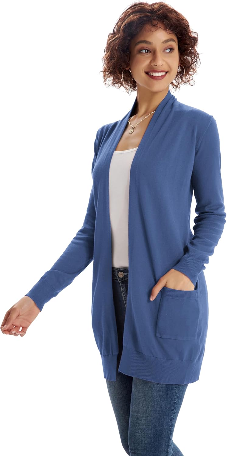 imageGRACE KARIN Women Lightweight Cardigan Sweaters with Pocket Long Sleeve ShrugsDemin Blue