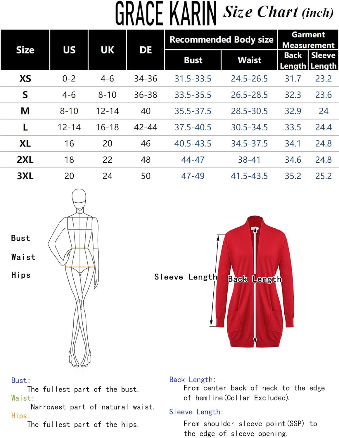 GRACE KARIN Women Lightweight Cardigan Sweaters with Pocket Long Sleeve Shrugs(Demin Blue)