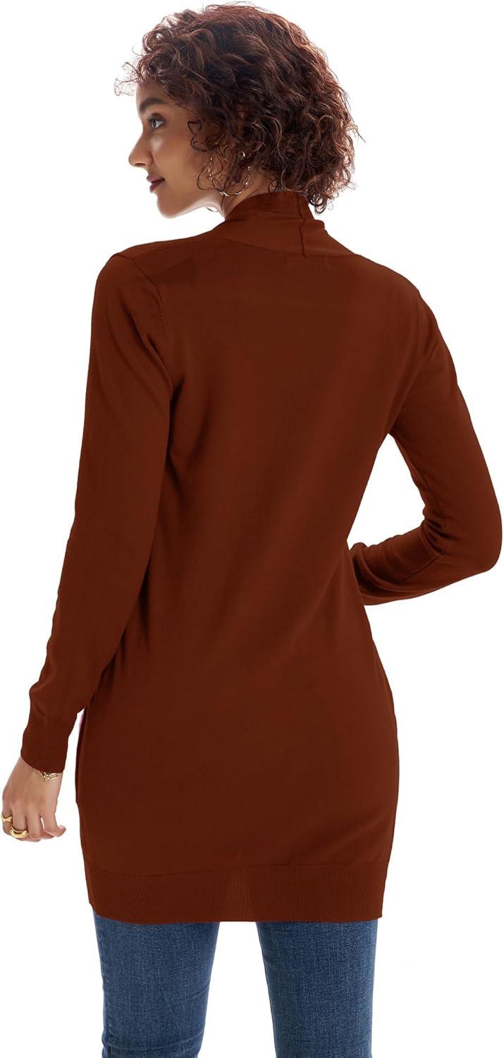 GRACE KARIN Women Lightweight Cardigan Sweaters with Pocket Long Sleeve Shrugs(Russet Brown)