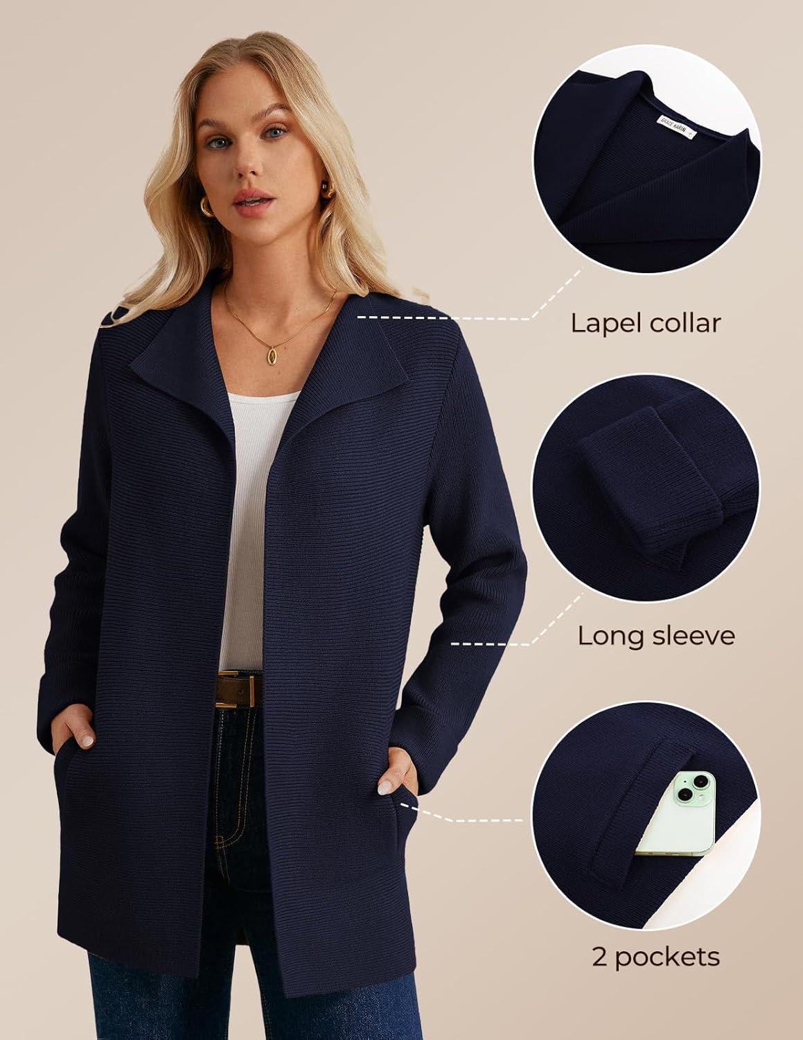 imageGRACE KARIN Women Long Cardigan Sweaters Fall Chunky Sweater Jacket Ribbed Knit Lapel Coatigan with PocketsNavy Blue