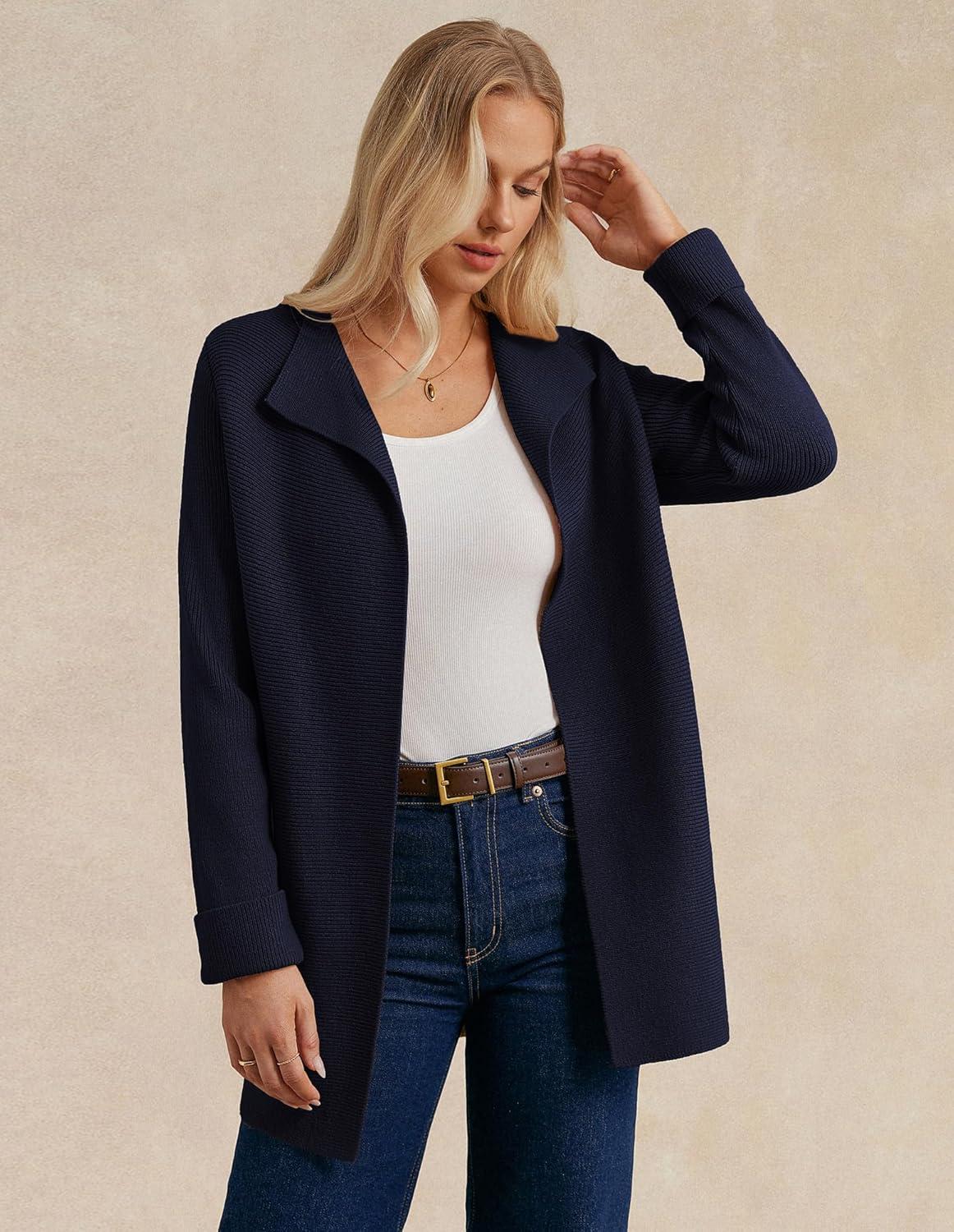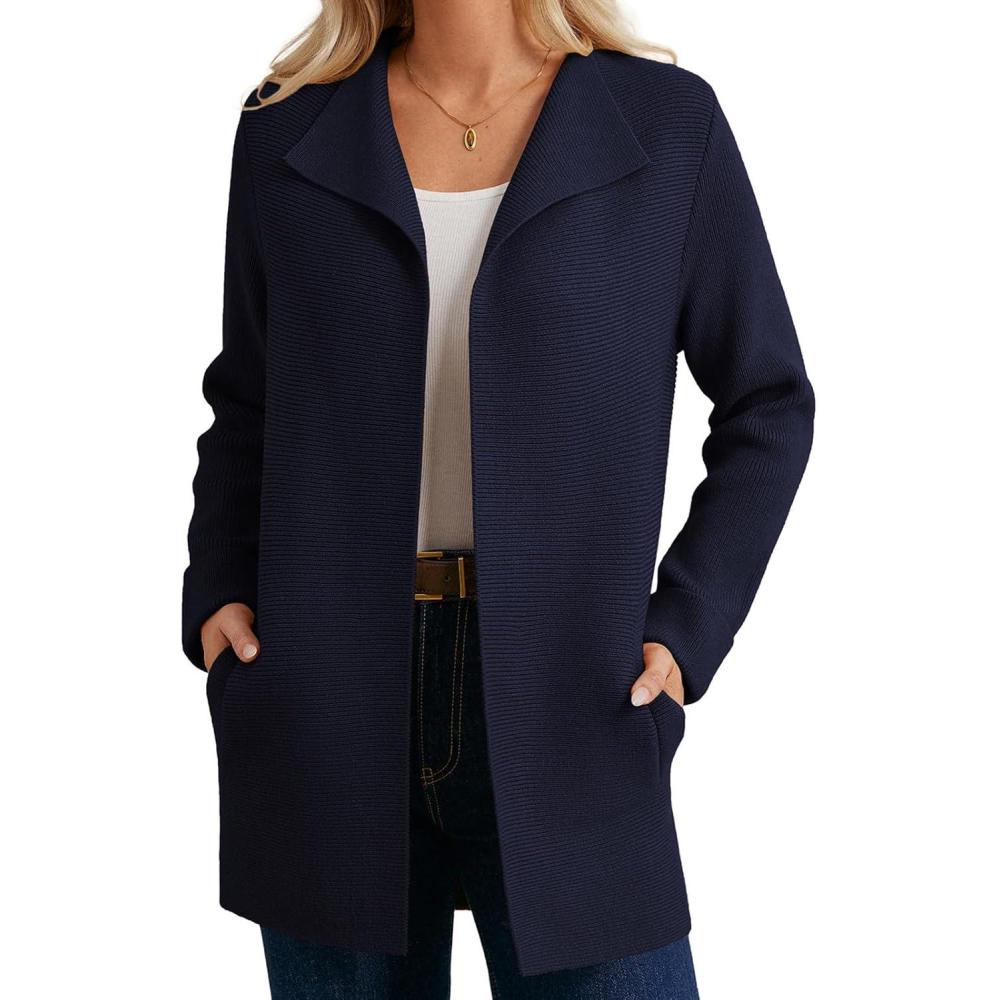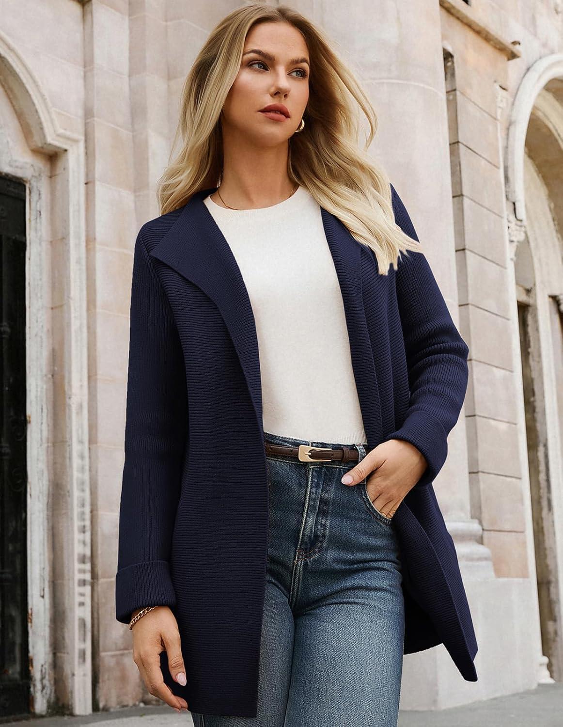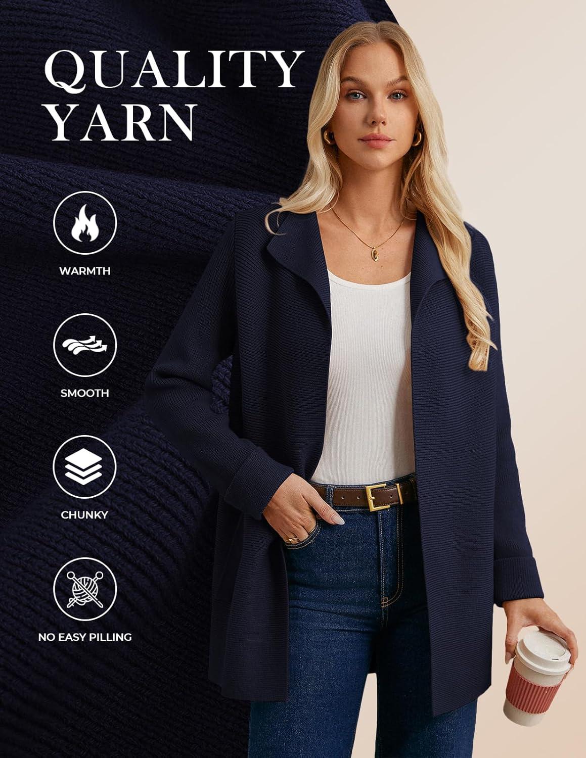 GRACE KARIN Women Long Cardigan Sweaters, Fall Chunky Sweater Jacket, Ribbed Knit Lapel Coatigan with Pockets(Navy Blue)