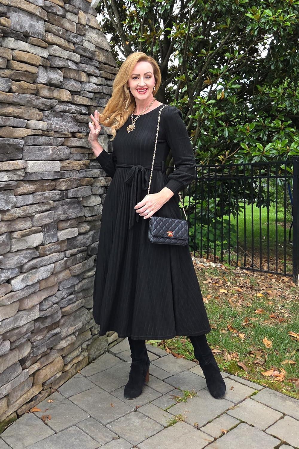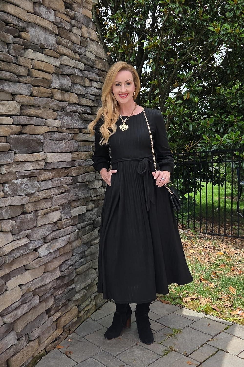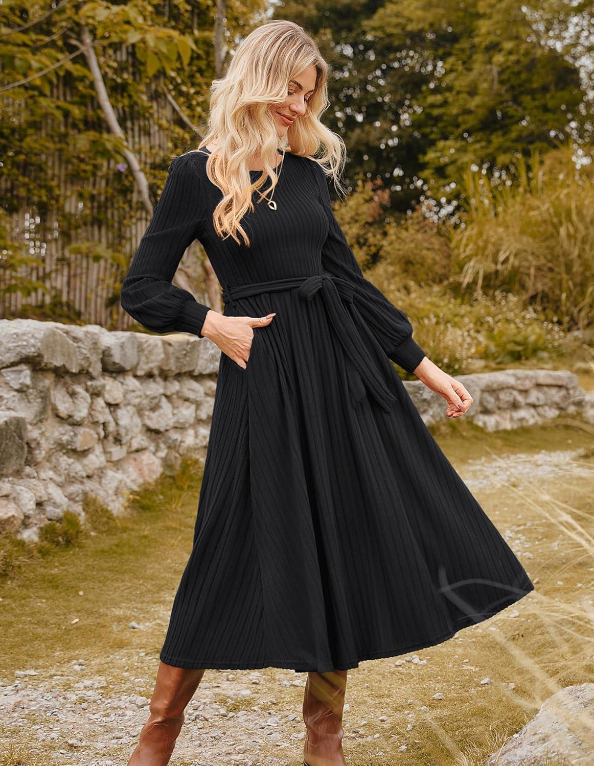 Don’t miss out on our limited-time offer: buy GRACE KARIN Women Long Sleeve Knit Dress 2025 Fall Tie Waist Crew Neck Ribbed Casul A Line Midi Dress(Black), get a free {accessory}!
