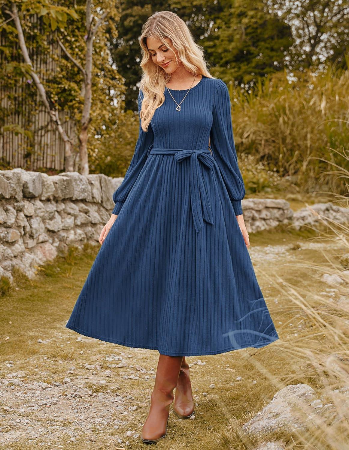 Don’t miss out on our limited-time offer: buy GRACE KARIN Women Long Sleeve Knit Dress 2025 Fall Tie Waist Crew Neck Ribbed Casul A Line Midi Dress(Blue), get {accessory} 50% off!