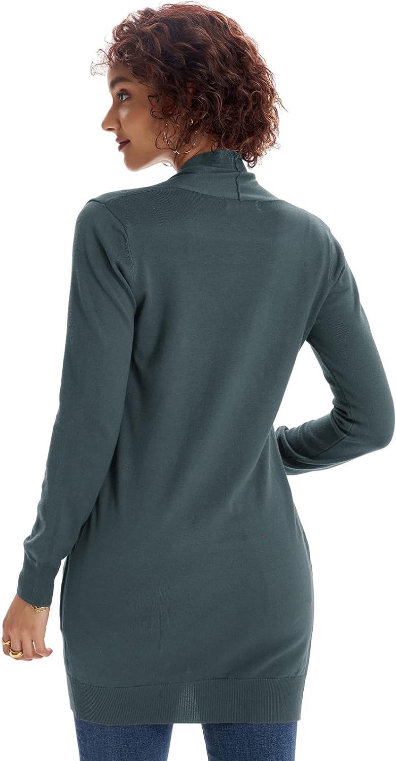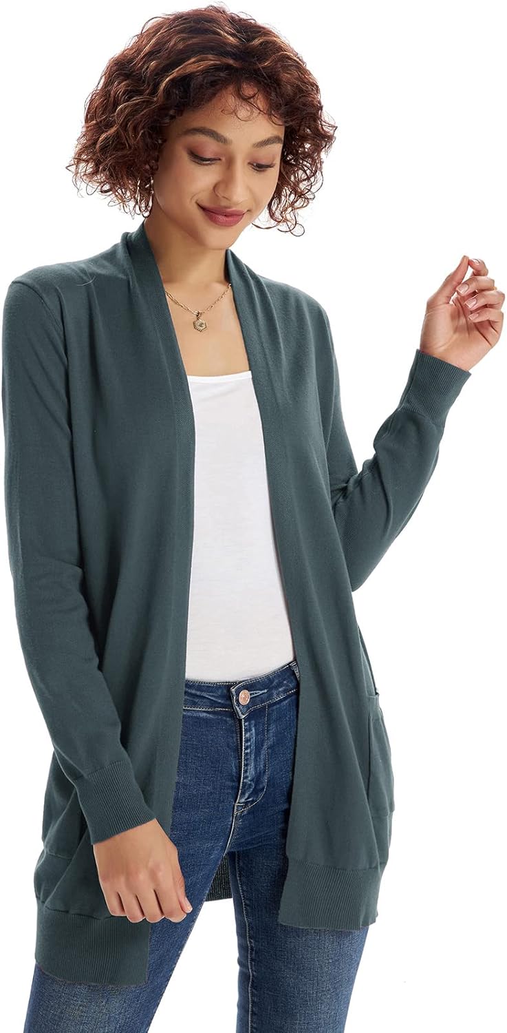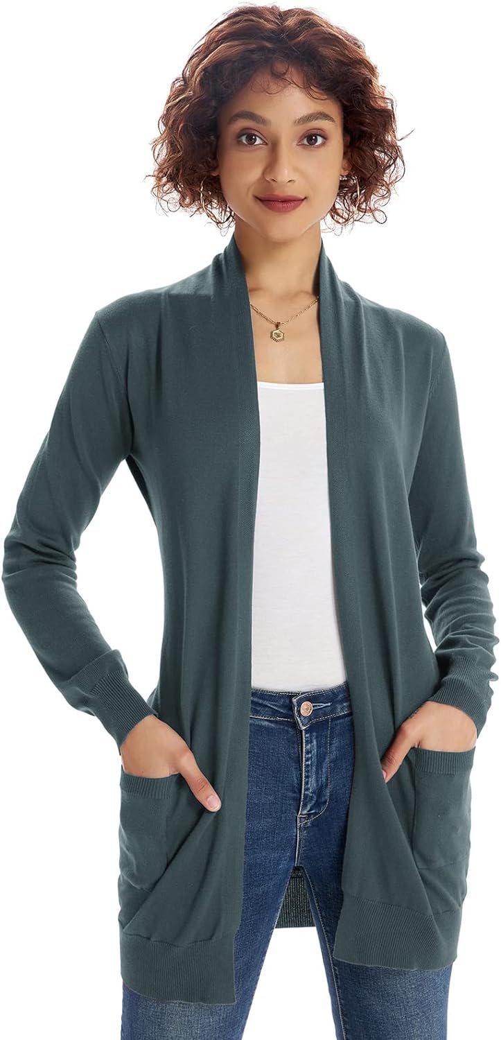 GRACE KARIN Women Open Front Cardigan Sweaters Pockets Long Sleeve Shrugs(Cadet Gray)