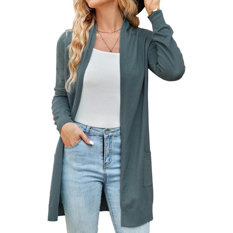 GRACE KARIN Women Open Front Cardigan Sweaters Pockets Long Sleeve ShrugsCadet Gray