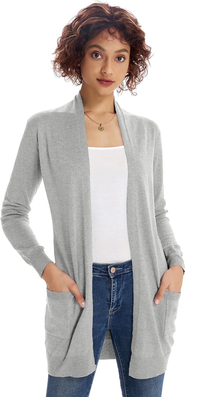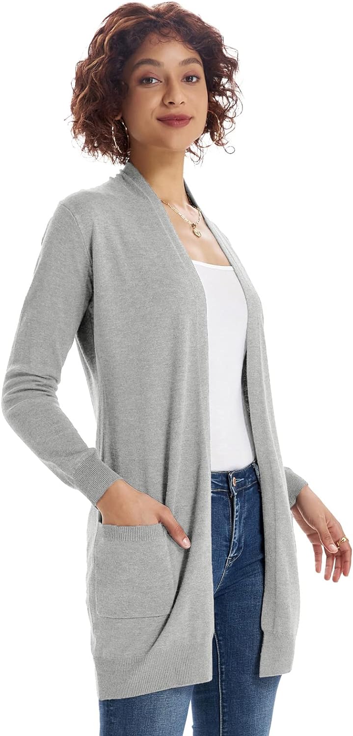 GRACE KARIN Women Open Front Cardigan Sweaters Pockets Long Sleeve ShrugsLight Gray