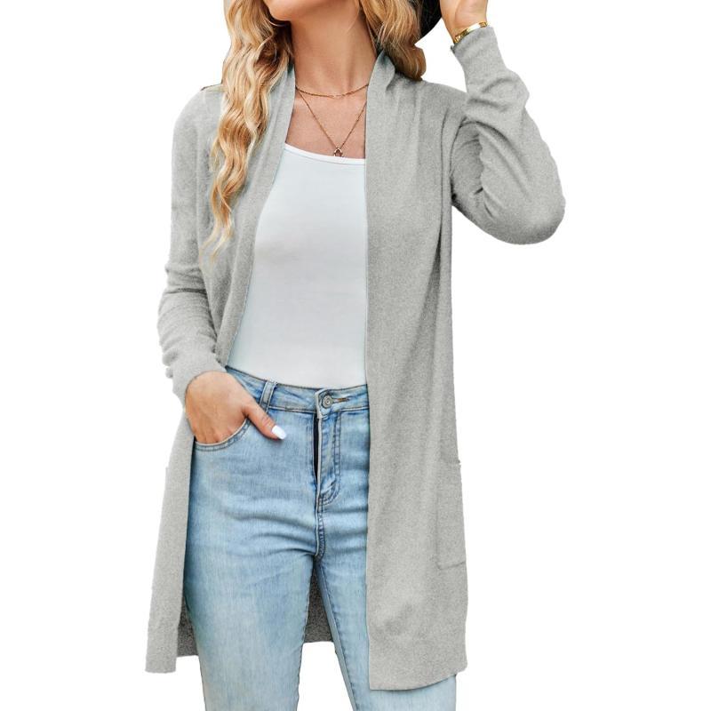 GRACE KARIN Women Open Front Cardigan Sweaters Pockets Long Sleeve Shrugs(Light Gray)