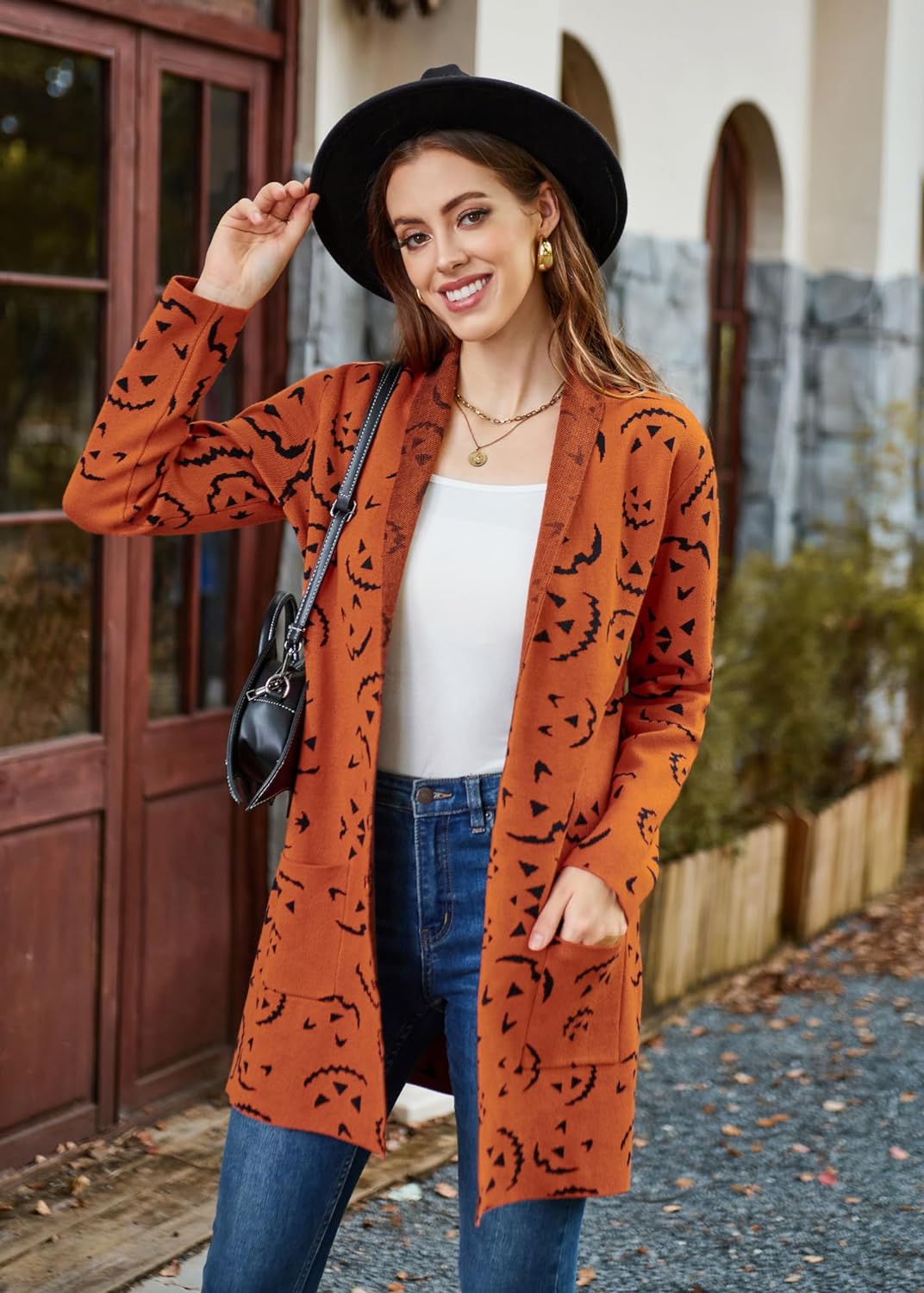 GRACE KARIN Women Open Front Cardigan Sweaters Pockets Long Sleeve Shrugs(Pumpkin)