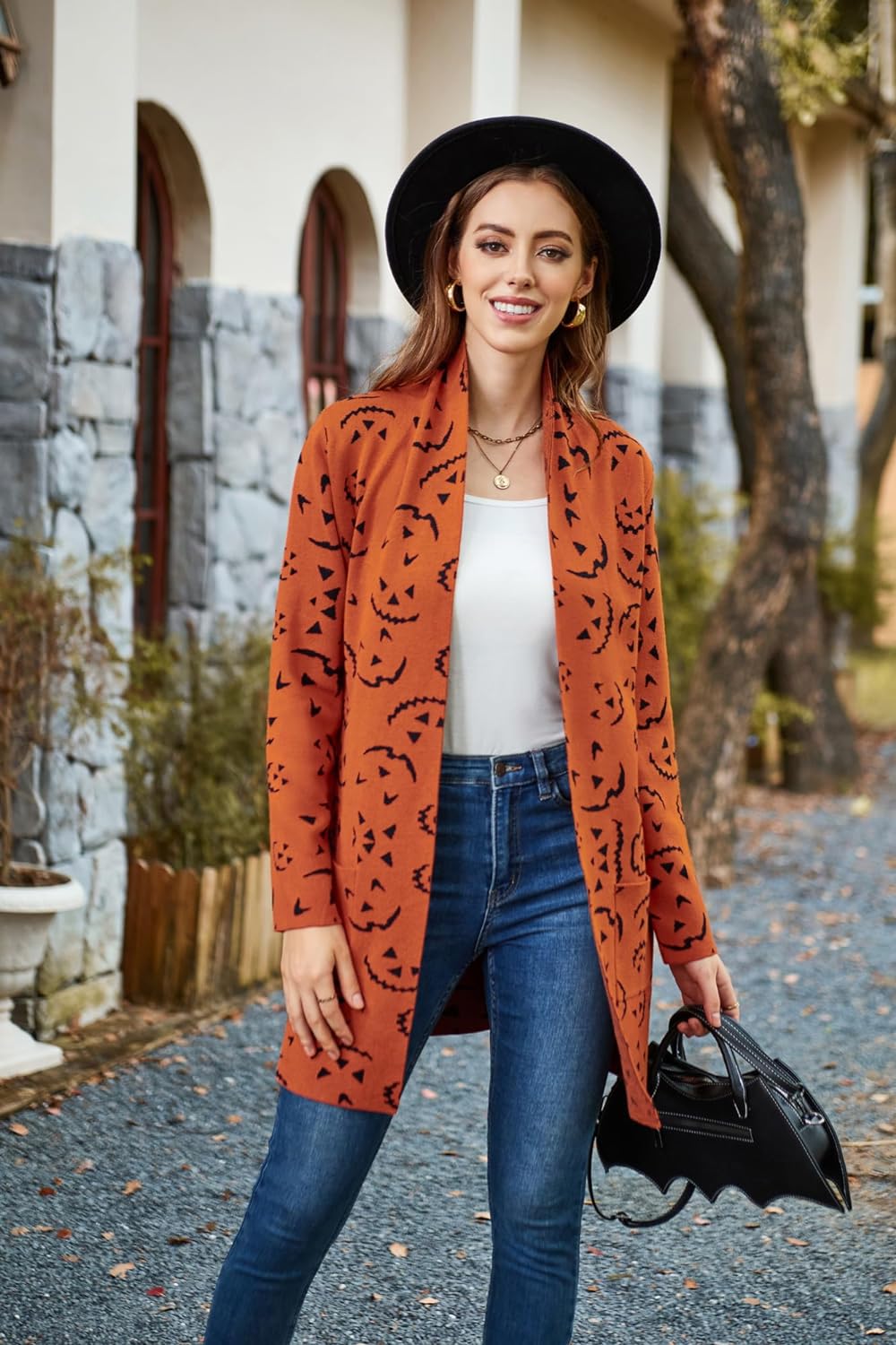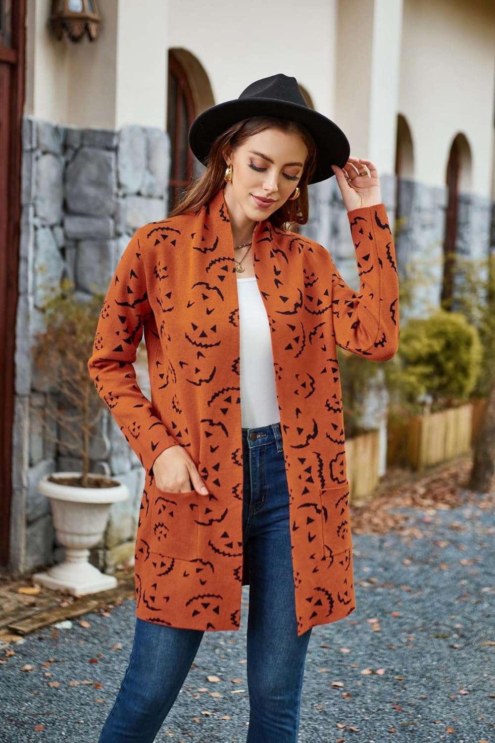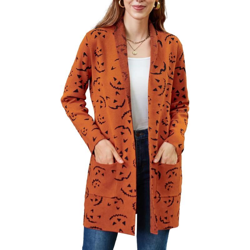 GRACE KARIN Women Open Front Cardigan Sweaters Pockets Long Sleeve ShrugsPumpkin