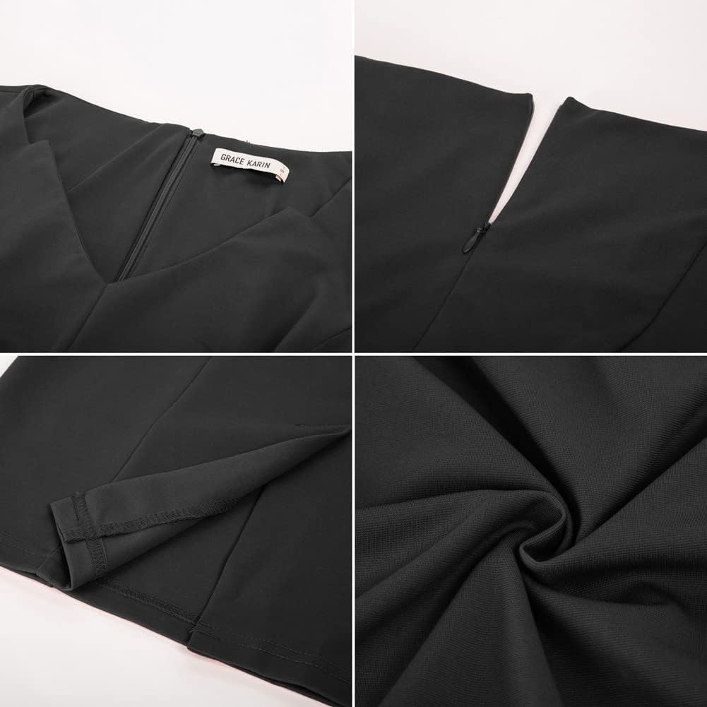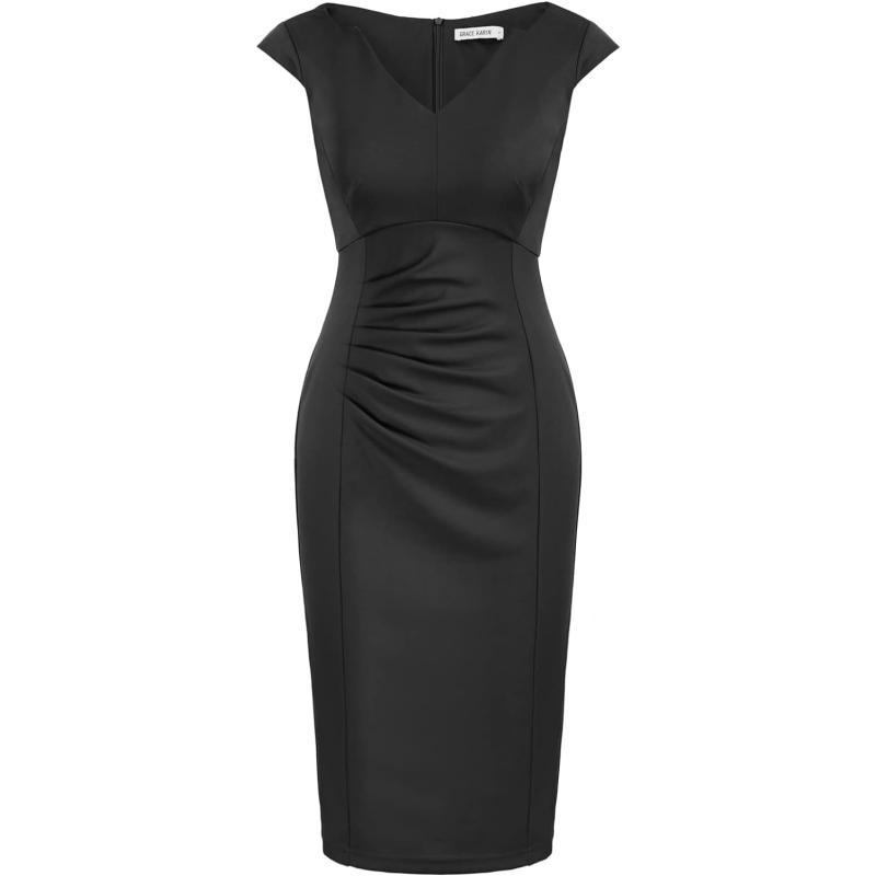 GRACE KARIN Women Ruched Bodycon Dress Cap Sleeve VNeck Knee Length Work DressBlack