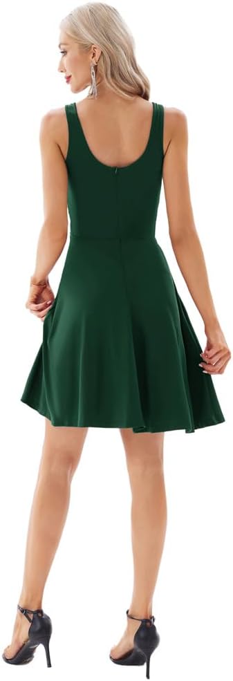 GRACE KARIN Women Sleeveless Lace Patchwork Deep V-Neck A Line Flared Party Dress(Green)