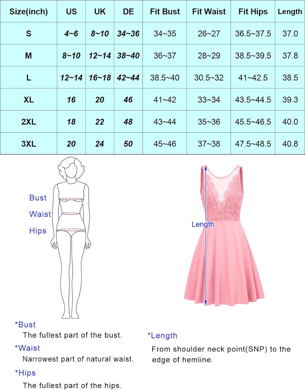 GRACE KARIN Women Sleeveless Lace Patchwork Deep V-Neck A Line Flared Party Dress(Harbor Blue)