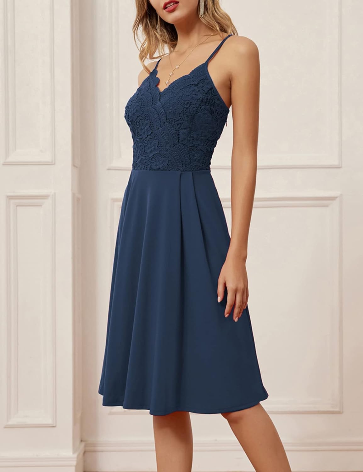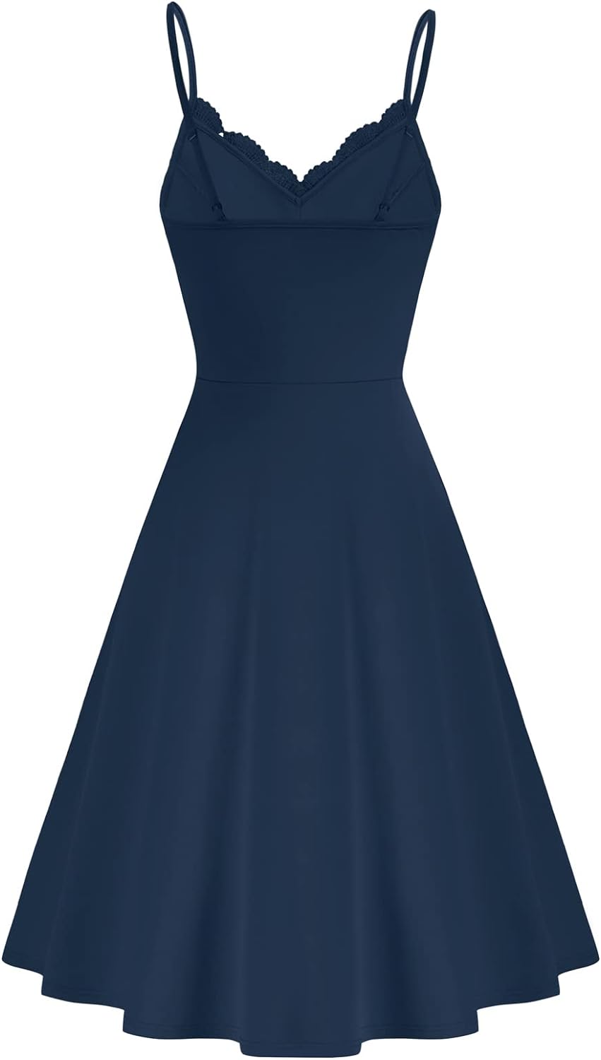 GRACE KARIN Women Sleeveless Lace Patchwork Deep V-Neck A Line Flared Party Dress(Navy(sleeveless))
