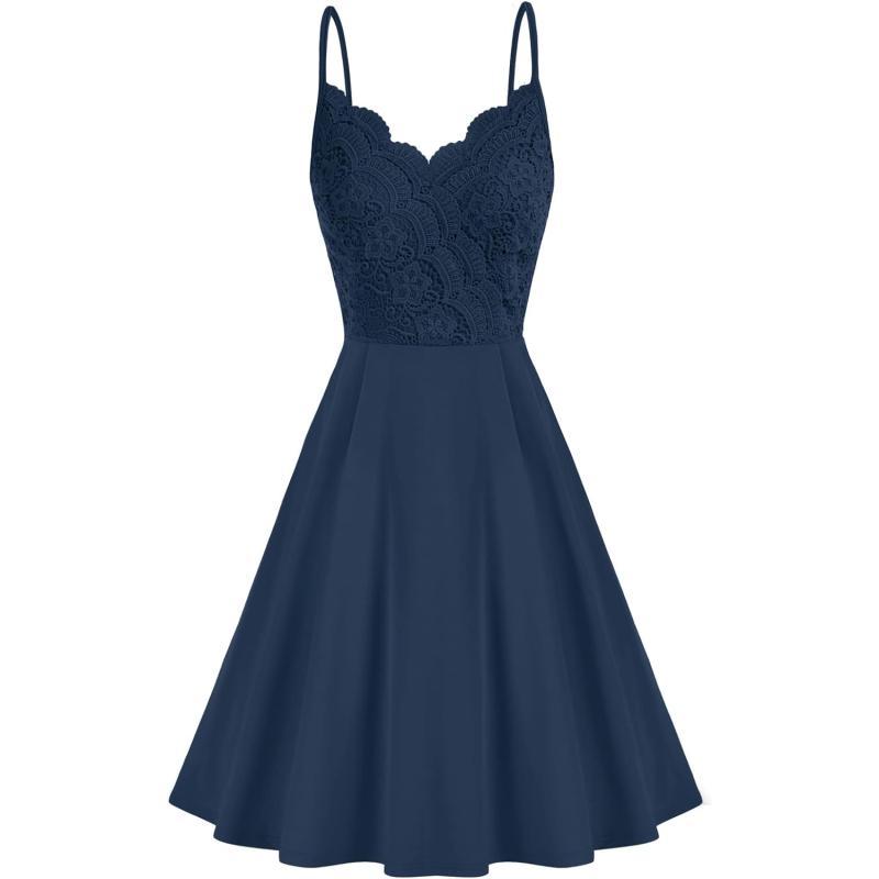 GRACE KARIN Women Sleeveless Lace Patchwork Deep VNeck A Line Flared Party DressNavysleeveless
