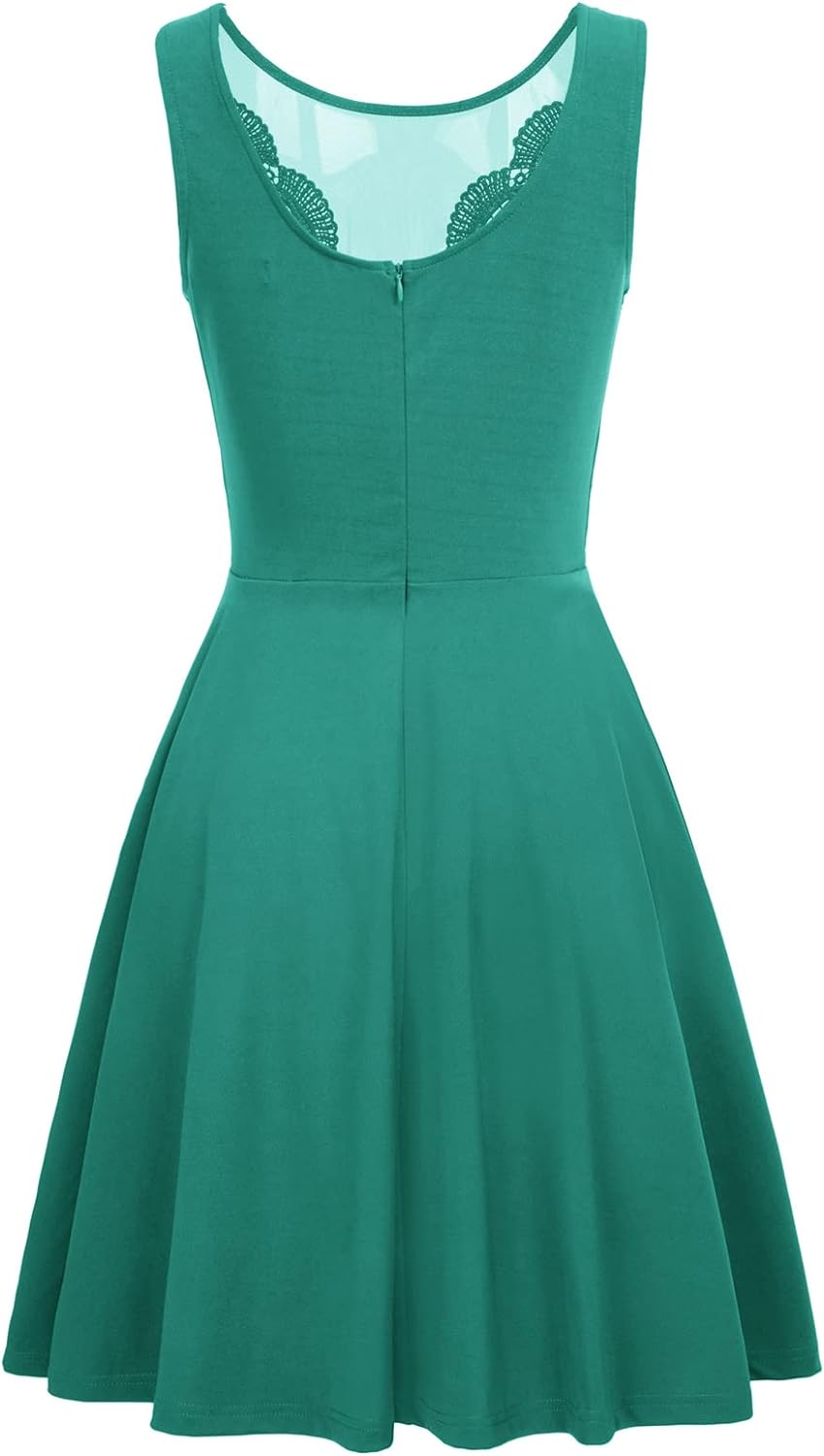 GRACE KARIN Women Sleeveless Lace Patchwork Deep V-Neck A Line Flared Party Dress(Ocean Floor)
