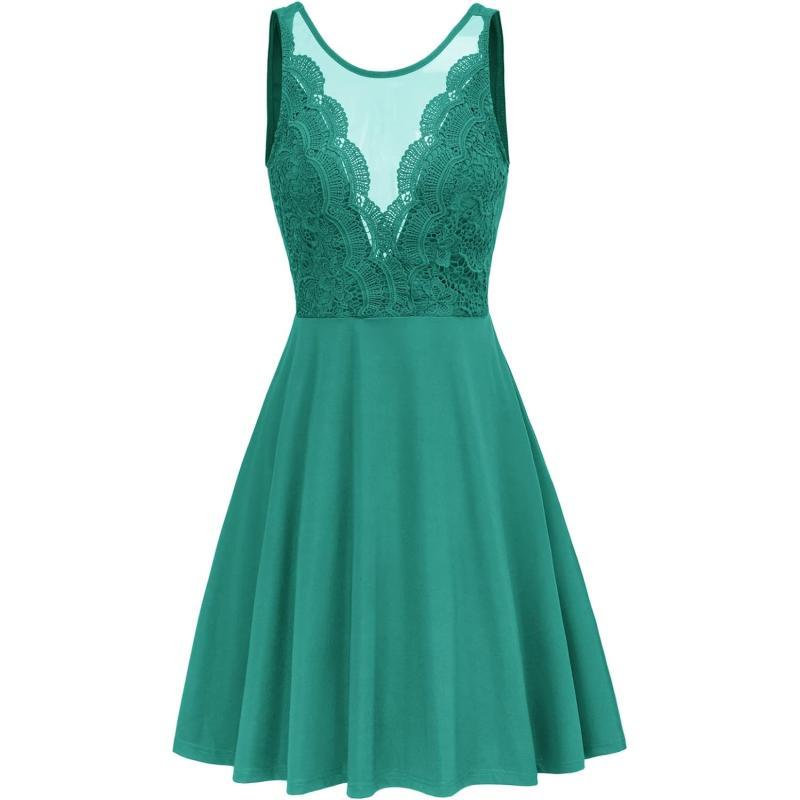 GRACE KARIN Women Sleeveless Lace Patchwork Deep VNeck A Line Flared Party DressOcean Floor