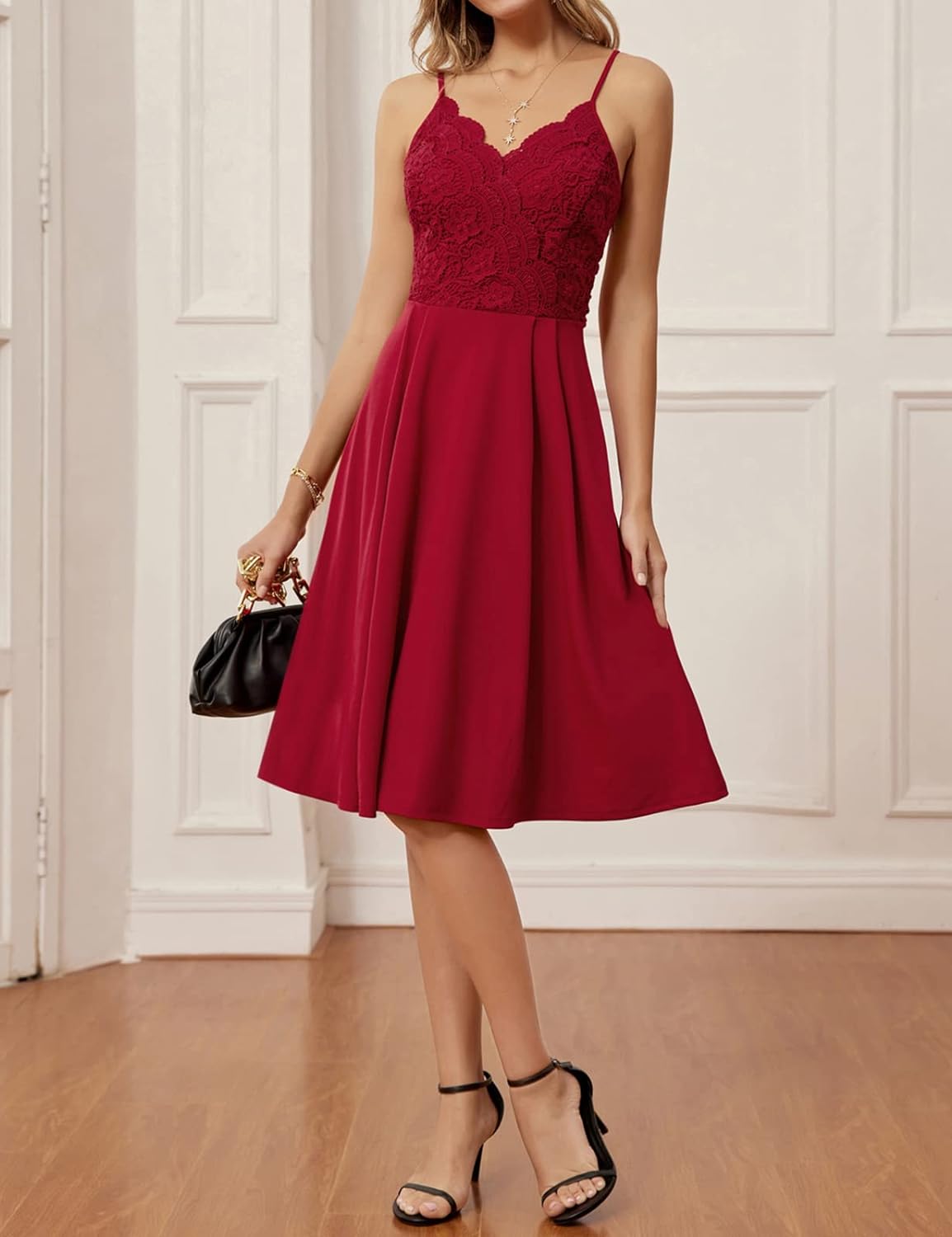 Be the first to review “GRACE KARIN Women Sleeveless Lace Patchwork Deep V-Neck A Line Flared Party Dress(Red(sleeveless))”
