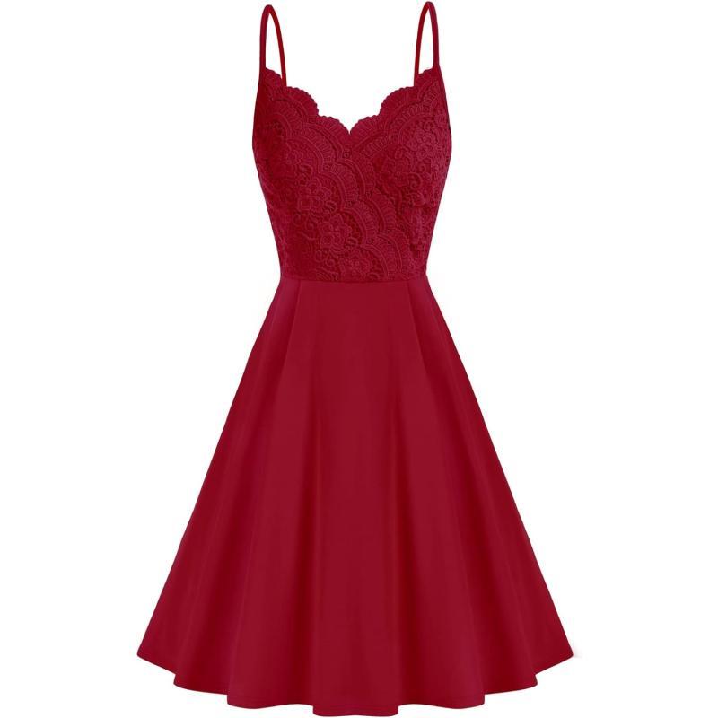 GRACE KARIN Women Sleeveless Lace Patchwork Deep VNeck A Line Flared Party DressRedsleeveless