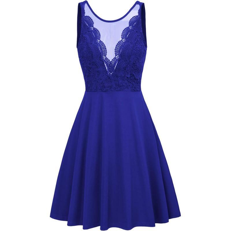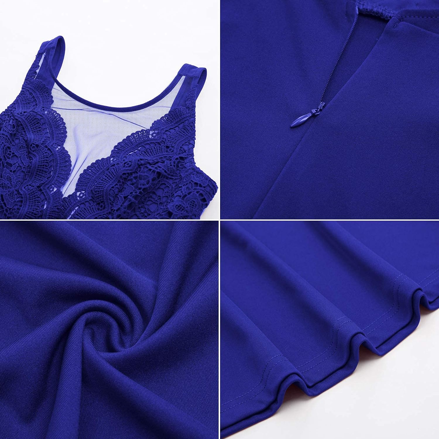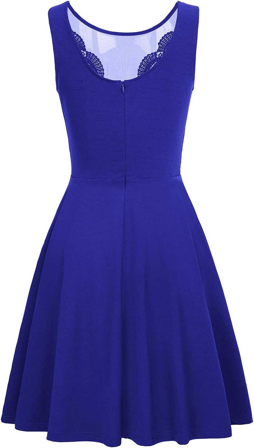 GRACE KARIN Women Sleeveless Lace Patchwork Deep V-Neck A Line Flared Party Dress(Royal Blue)