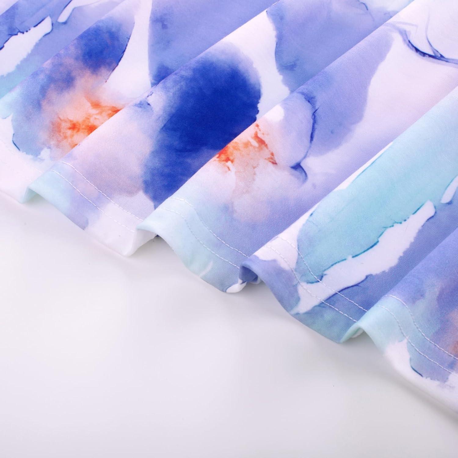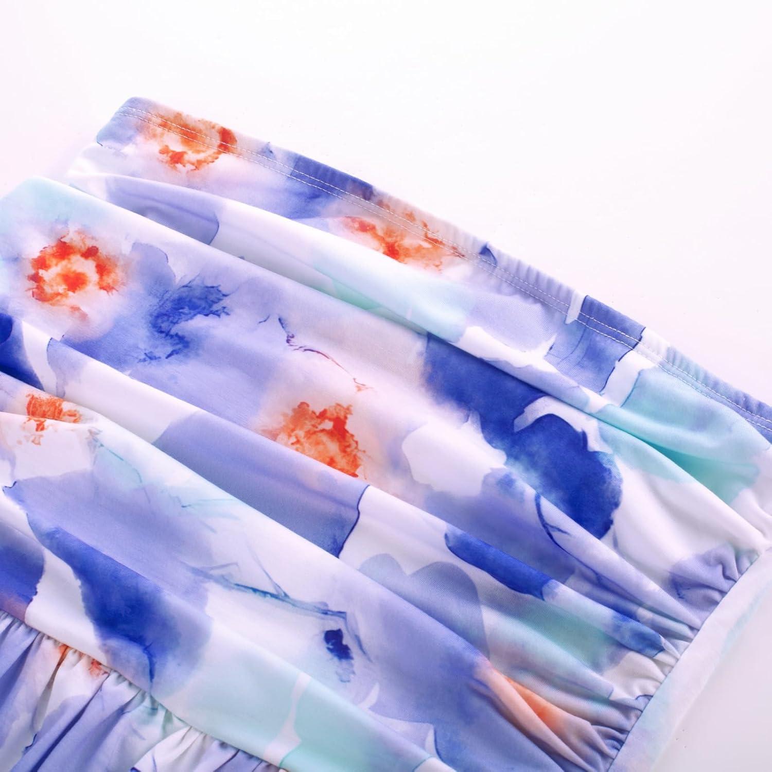 GRACE KARIN Women Strapless Casual Loose Ruched Long Maxi Dress with Pockets(Blue Watercolor Flower)