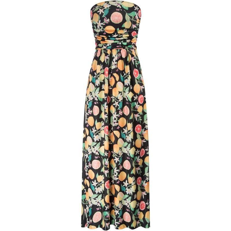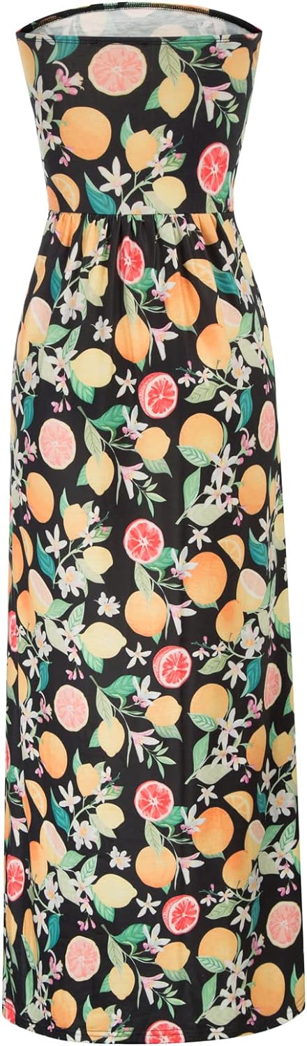 GRACE KARIN Women Strapless Casual Loose Ruched Long Maxi Dress with Pockets(Fruit Flower)