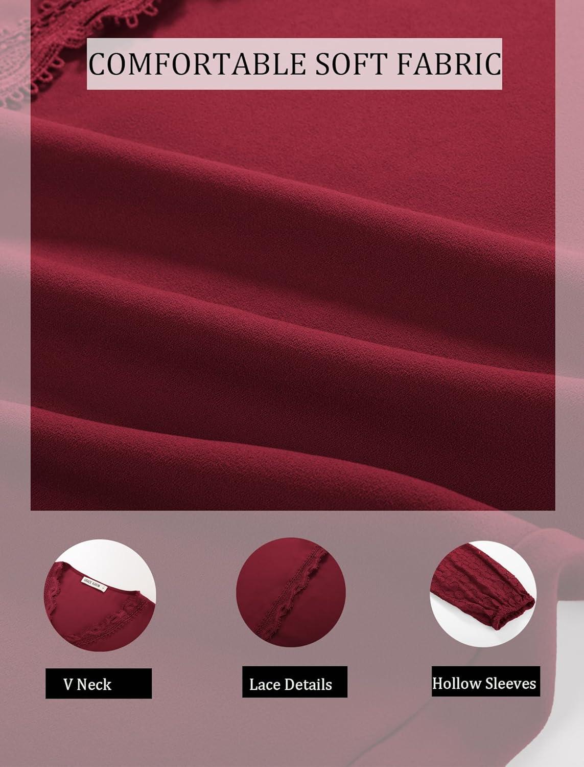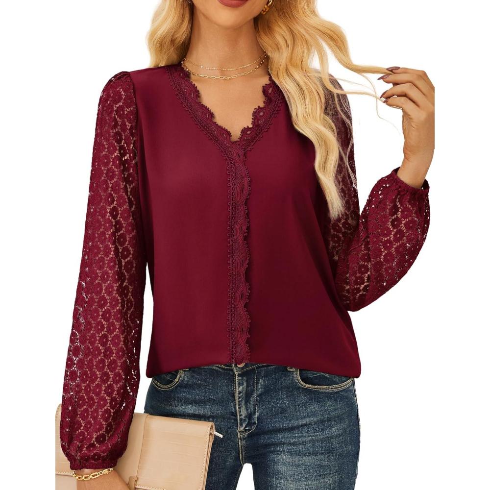 imageGRACE KARIN Women Tops V Neck Long Sleeve Shirts Lace Dressy Casual Business Blouses Fall Fashion 2025Dark Red