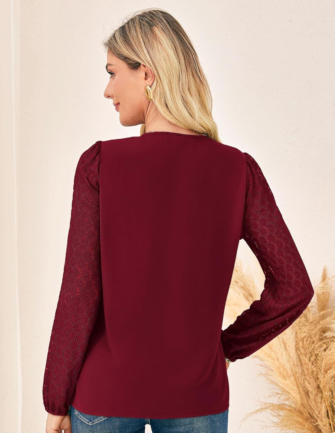 GRACE KARIN Women Tops V Neck Long Sleeve Shirts Lace Dressy Casual Business Blouses Fall Fashion 2025(Dark Red)