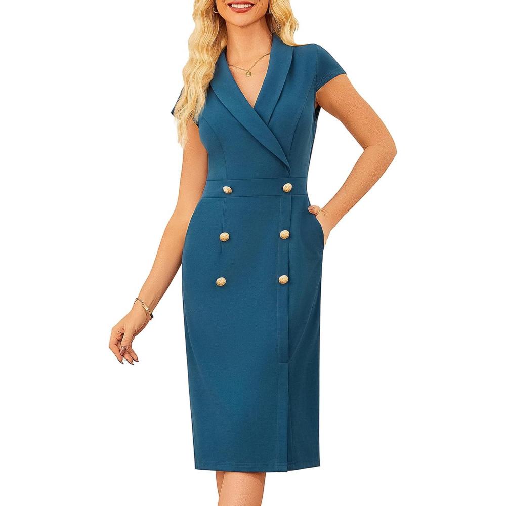 Save big on GRACE KARIN Women Work Bodycon Dresses 2025,Business Office Midi Cap Sleeve Button Pencil Formal Outfits with Pockets(Teal) and accessories during our BOGO sale. Buy one, get one 50% off!