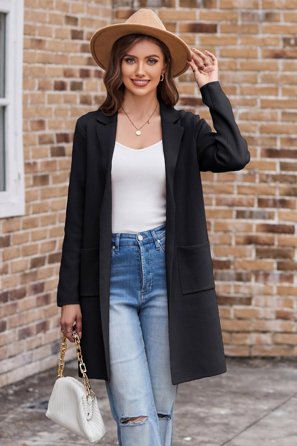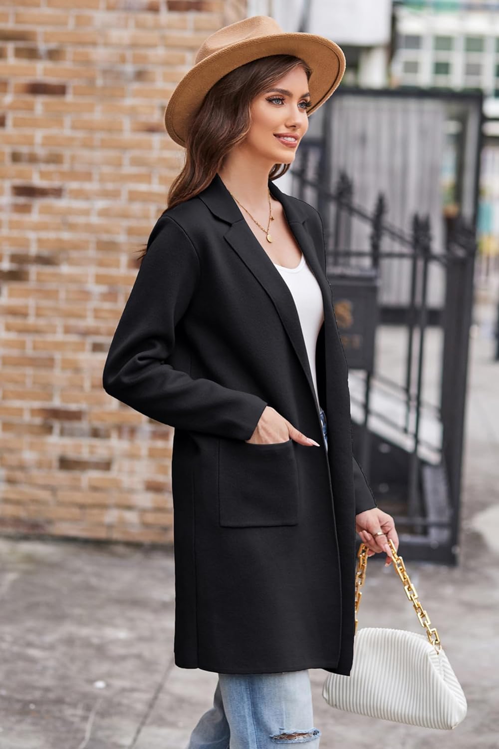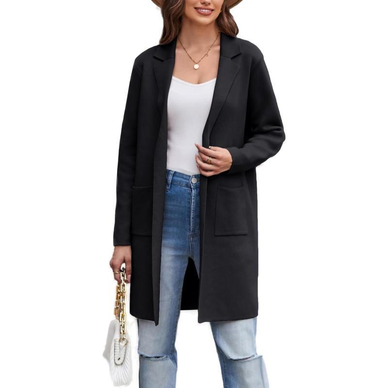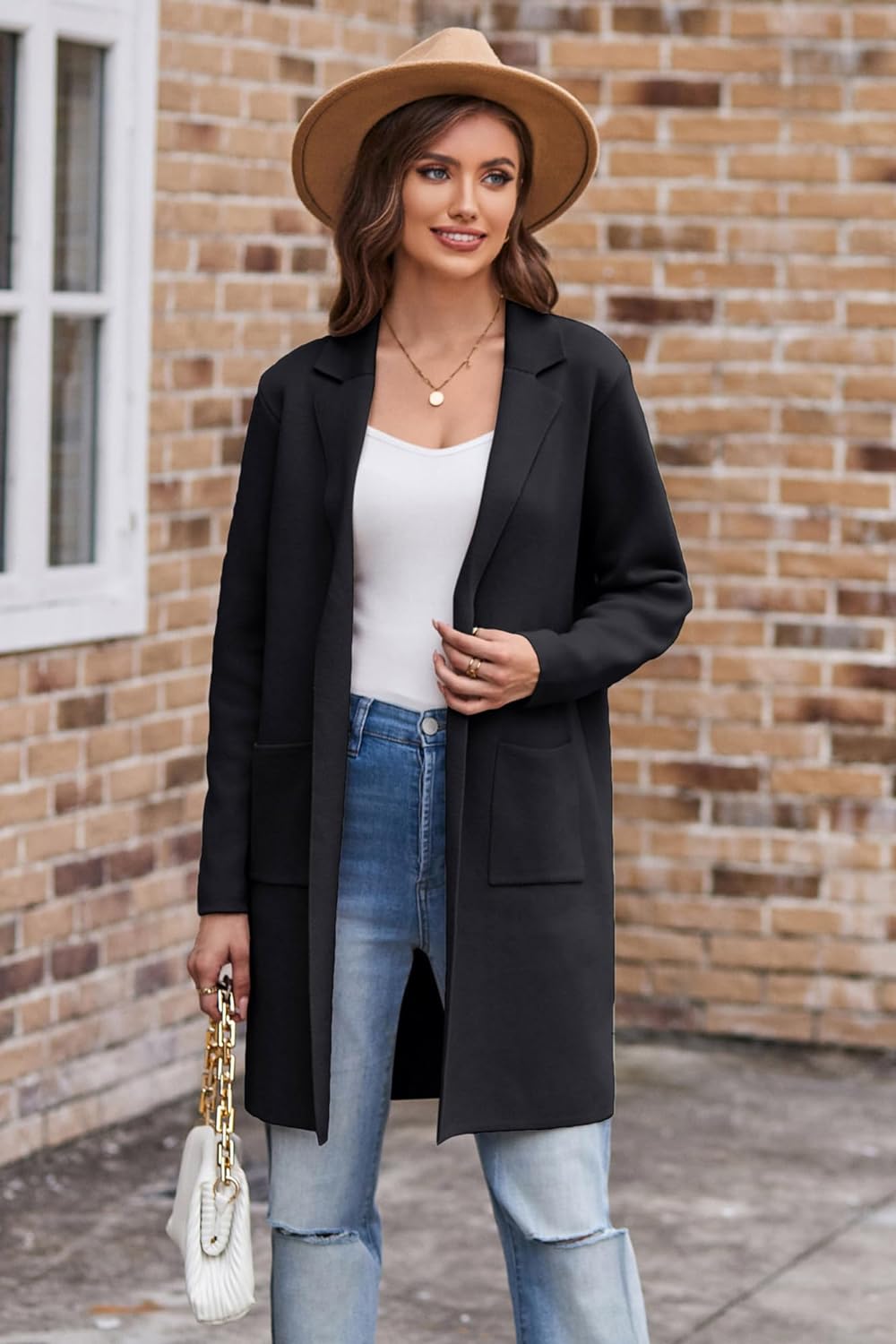 GRACE KARIN Women's 2023 Fashion Open Front Long Cardigan Sweaters Long Sleeve Lapel Knit Sweater Coats with Pockets(Black)