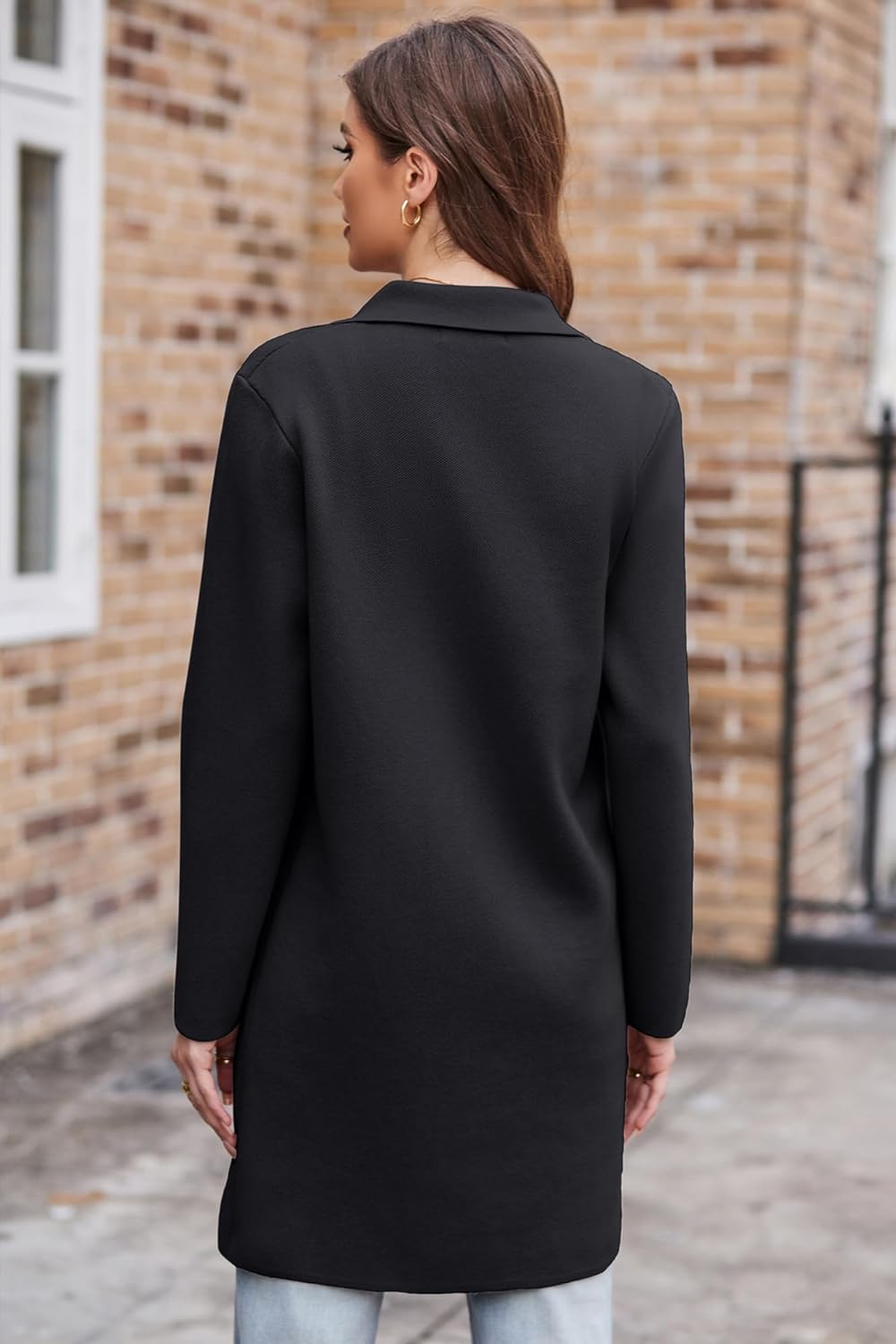 GRACE KARIN Womens 2023 Fashion Open Front Long Cardigan Sweaters Long Sleeve Lapel Knit Sweater Coats with PocketsBlack