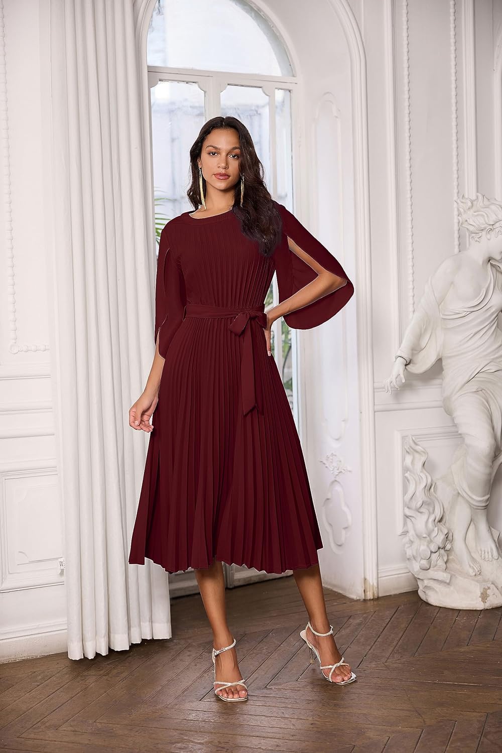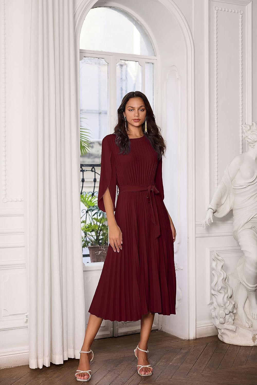 Includes Stylish Belt: A complementary belt is included with the dress, allowing you to cinch it at the waist for a more defined silhouette. You can experiment with different belt styles or choose to wear the dress without the belt for a more relaxed and casual vibe
