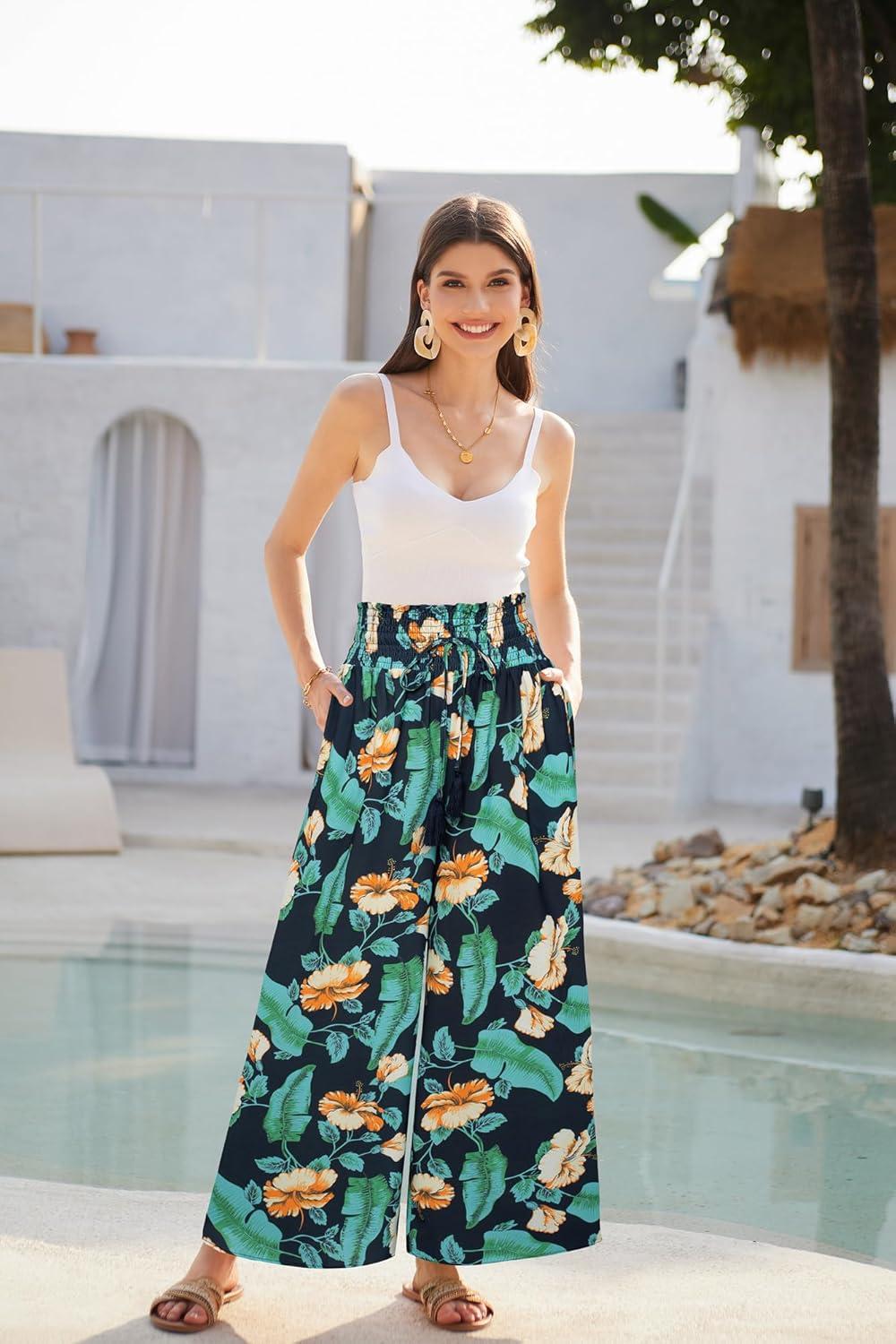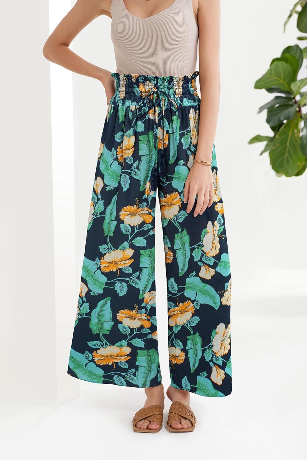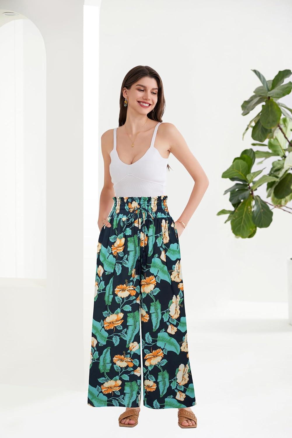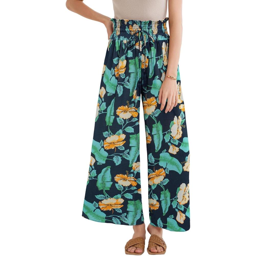 Score big savings on GRACE KARIN Womens 2024 Elastic High Waisted Palazzo Pants Loose Casual Wide Leg Lounge Boho Pant Trousers with Pocket(Navy Green Yellow Print) during our back-to-school sale. Limited quantities available.