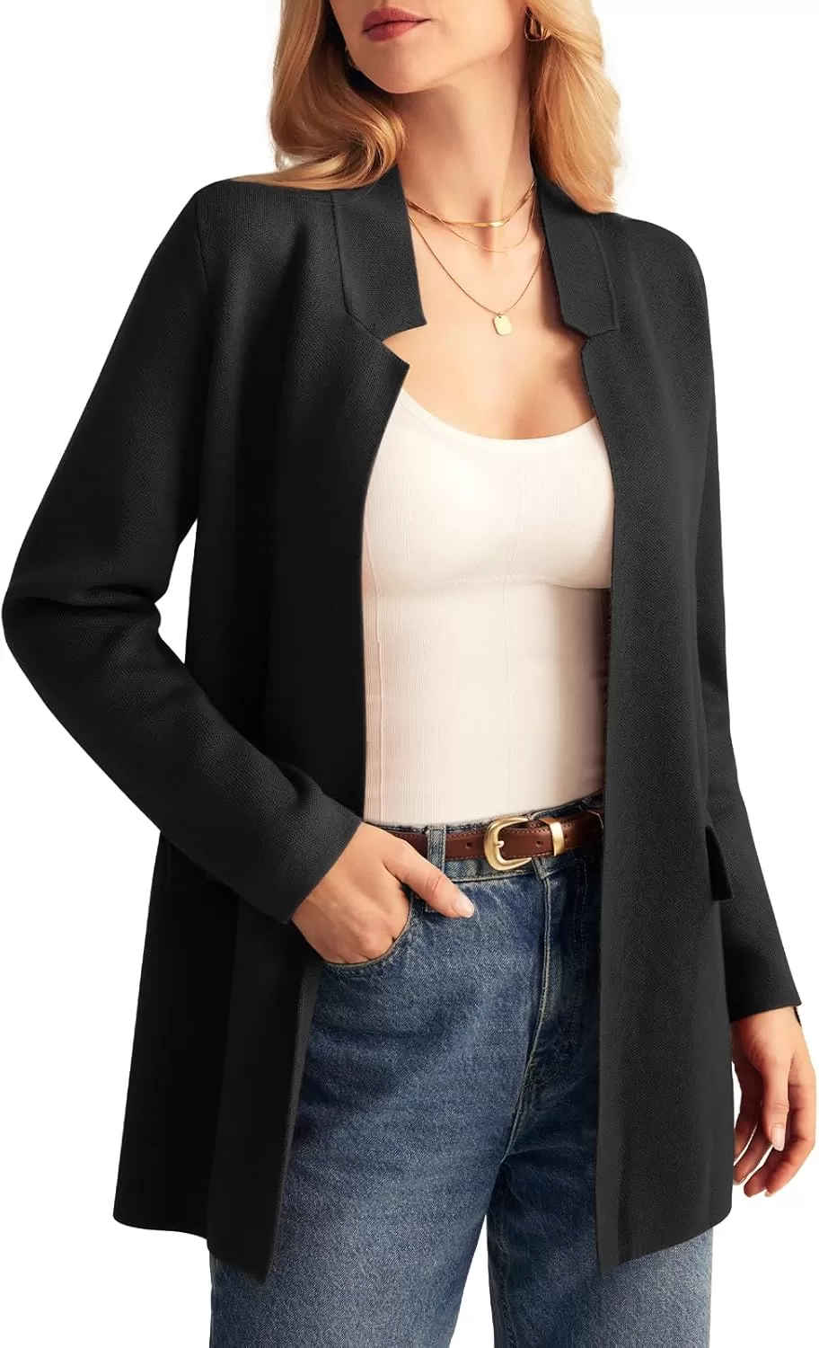 GRACE KARIN Women's 2024 Fall Long Sleeve Knit Cardigan Coat Open Front Notch Collar Sweater Blazer Coatigan Jackets(Black)