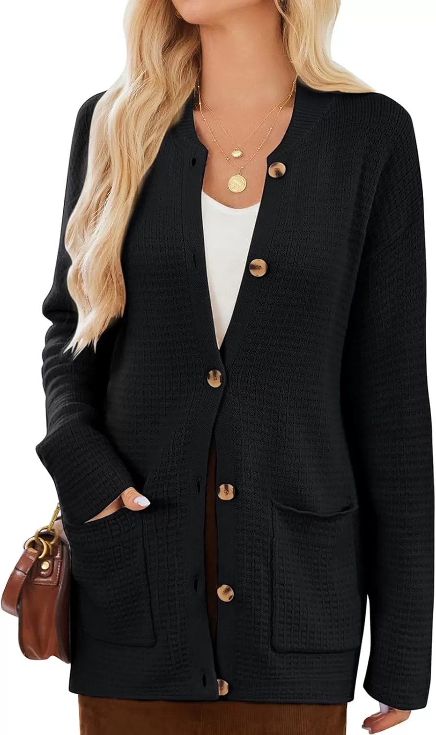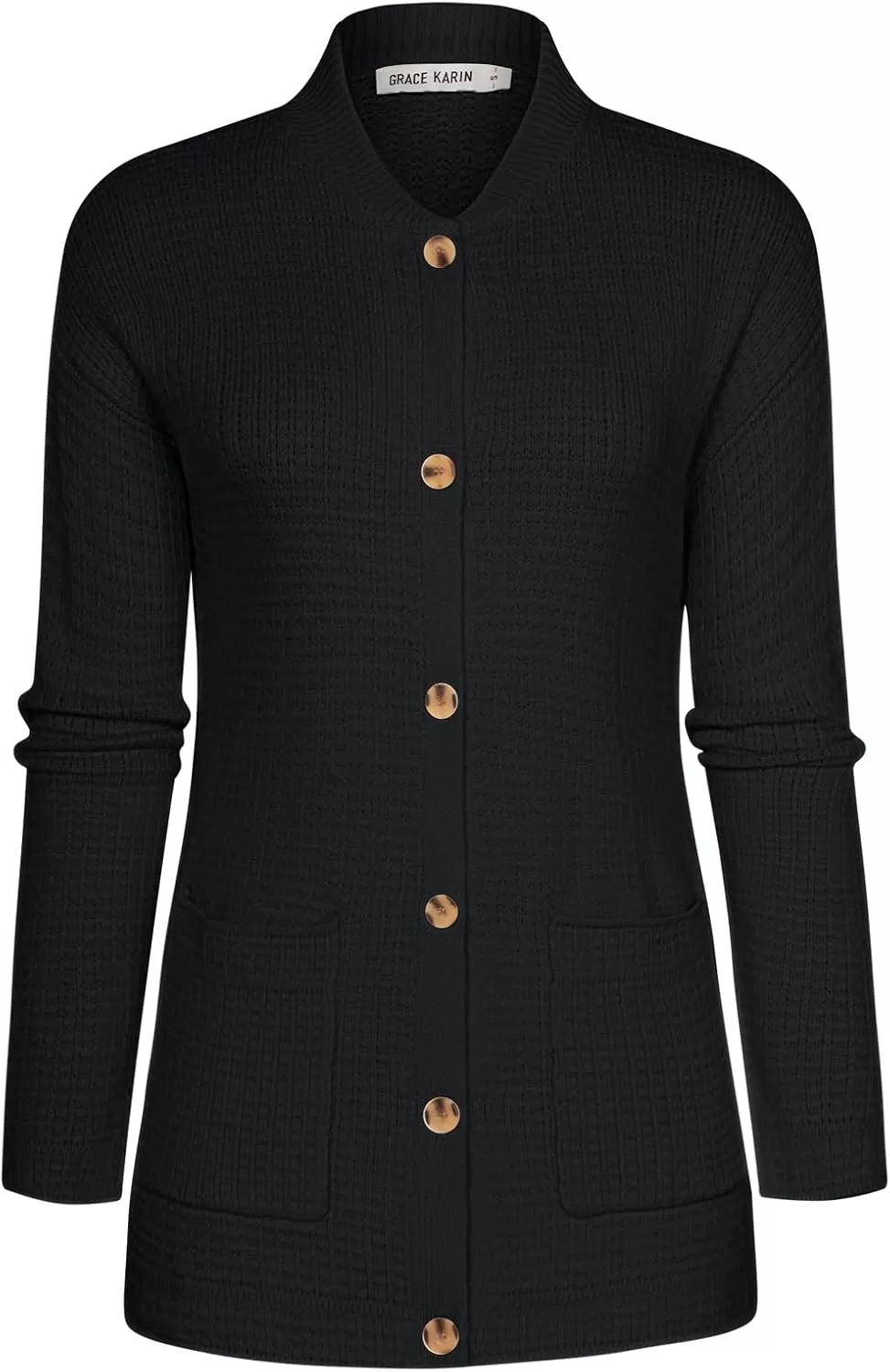 GRACE KARIN Women’s 2024 Fall Long Sleeve Waffle Knit Cardigan Sweater Open Front Cardigan Button Loose Outerwear S-XXL