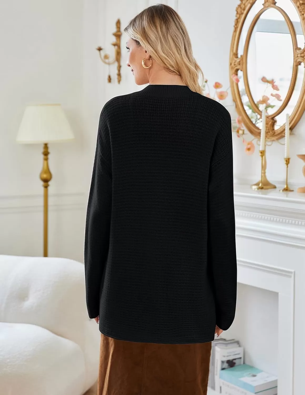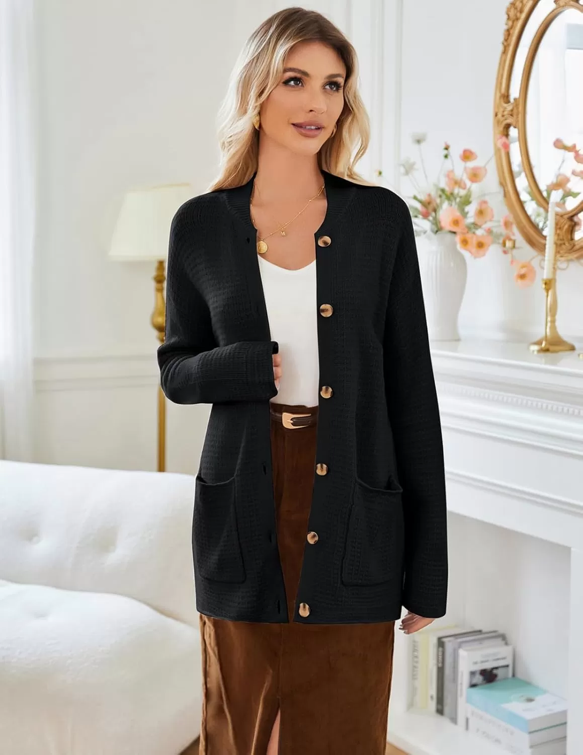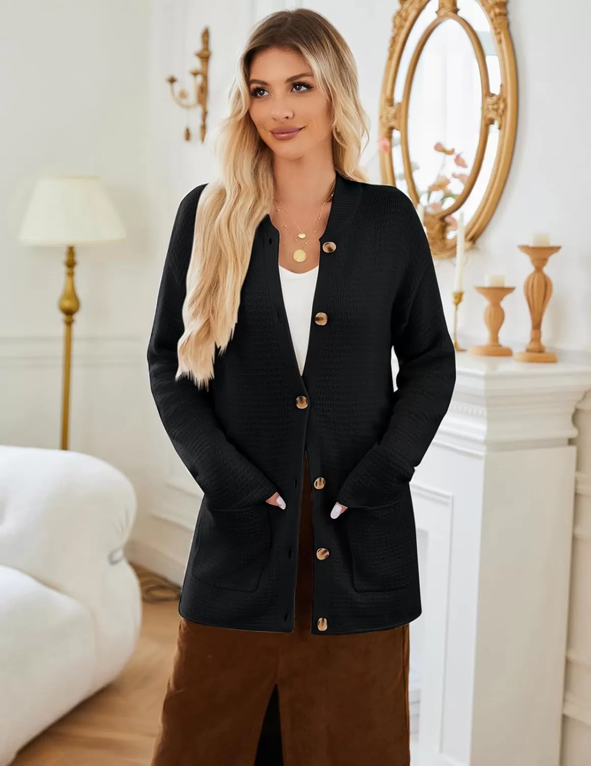 GRACE KARIN Women's 2024 Fall Long Sleeve Waffle Knit Cardigan Sweater Open Front Cardigan Button Loose Outerwear S-XXL