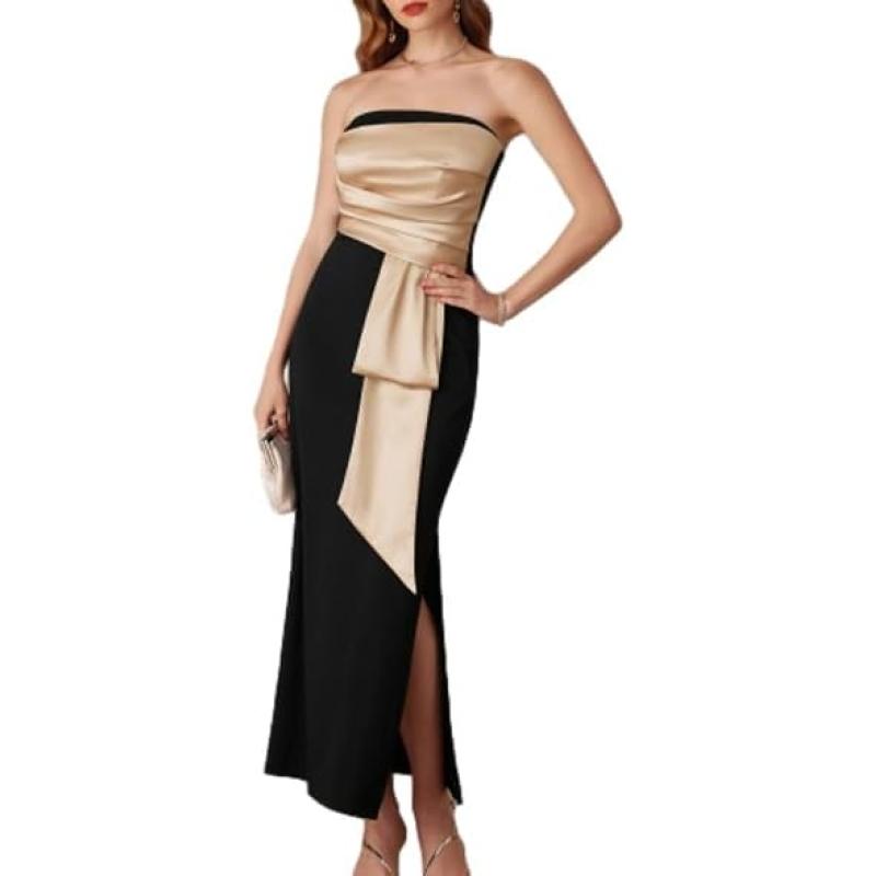 Be the first to review “GRACE KARIN Women’s 2024 Satin Strapless Dress Color Block Bodycon Party Dress with Side Slit(Black Apricot)”