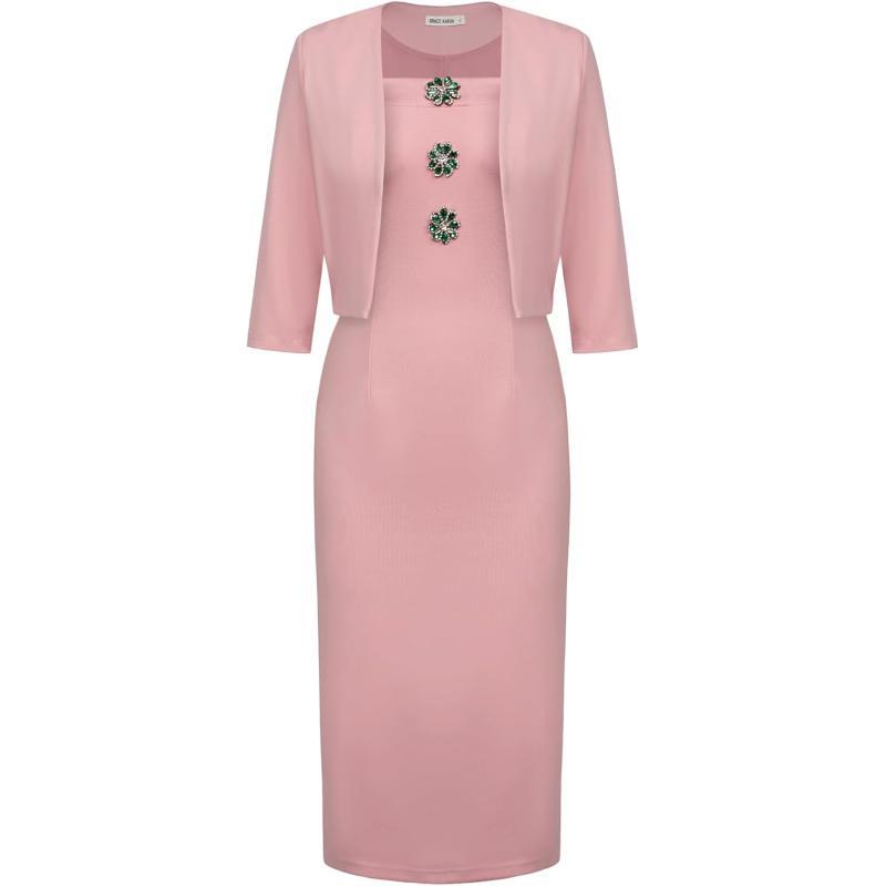 GRACE KARIN Women's 2024 Work Business Casual 2 Piece Outfits Midi Pencil Dress with 3/4 Sleeve Blazer Jacket Suit Sets(Pink)
