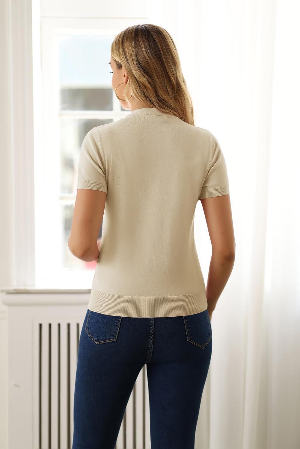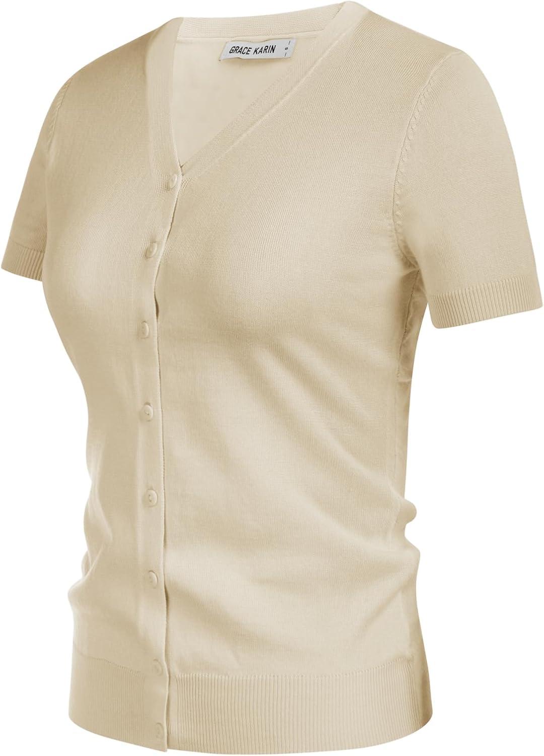 GRACE KARIN Womens 2025 Basic Summer Short Sleeve Cardigan Sweaters Lightweight V-Neck Button Down Cropped Shrug Sweater Tops(Short Sleeve Apricot)