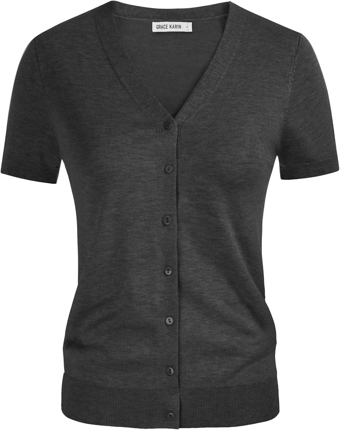 imageGRACE KARIN Womens 2025 Basic Summer Short Sleeve Cardigan Sweaters Lightweight VNeck Button Down Cropped Shrug Sweater TopsShort Sleeve Deep Gray