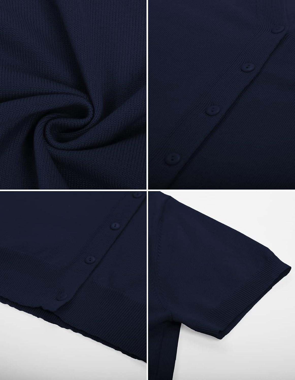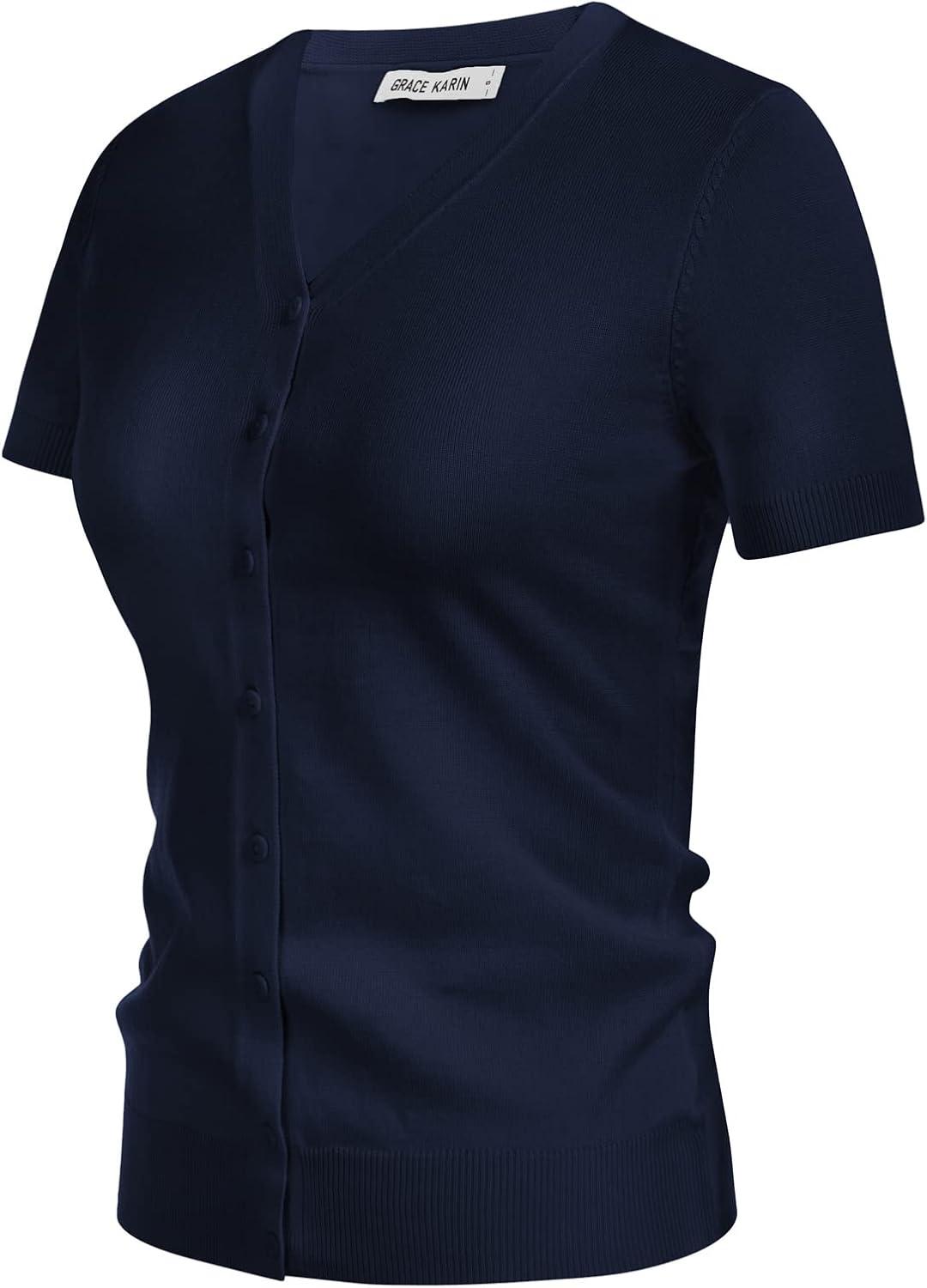 GRACE KARIN Womens 2025 Basic Summer Short Sleeve Cardigan Sweaters Lightweight V-Neck Button Down Cropped Shrug Sweater Tops(Short Sleeve Nave Blue)