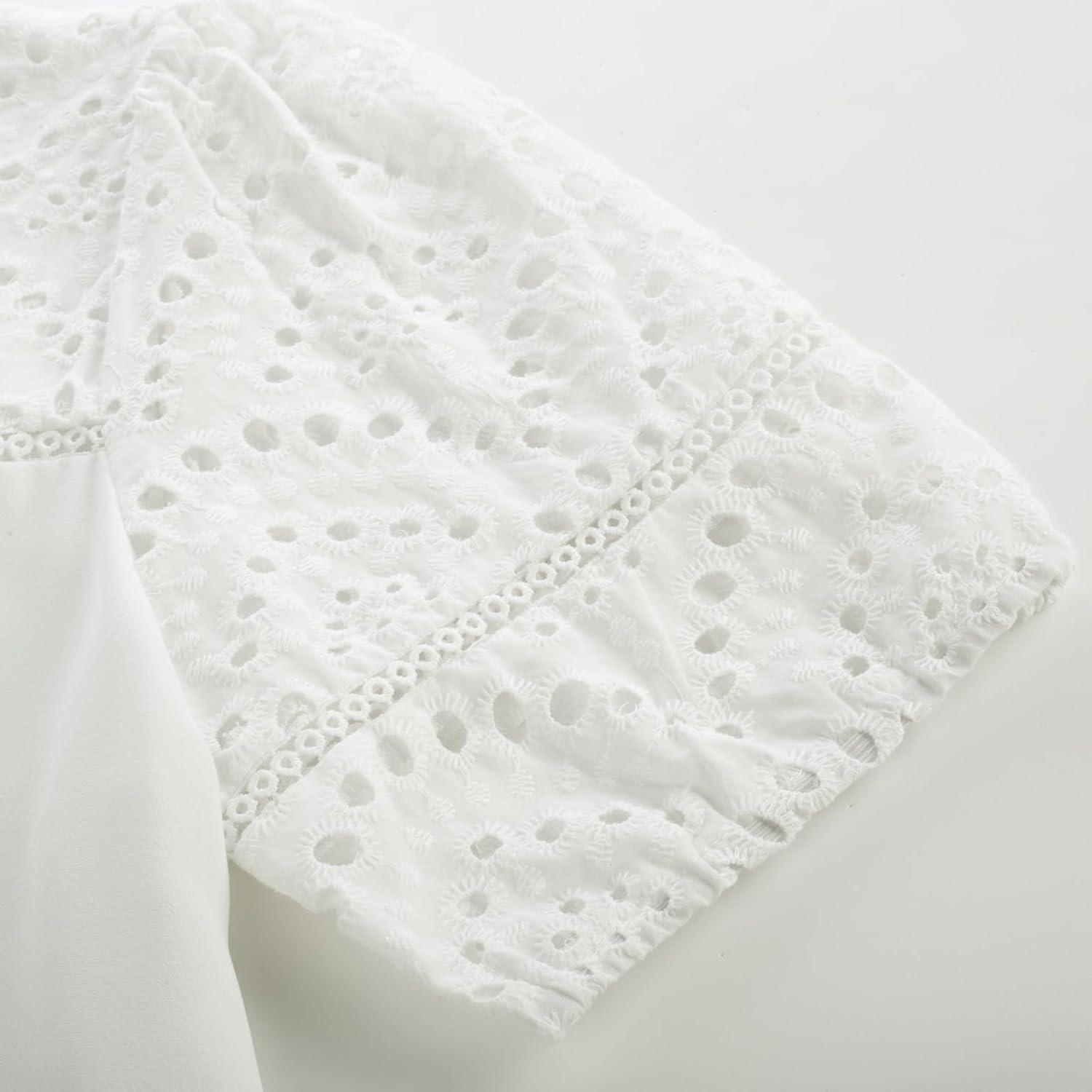 GRACE KARIN Women's 2025 Casual Tops Short Sleeve Eyelet Embroidered Summer Trendy Shirts Crewneck Crochet Blouses(White)