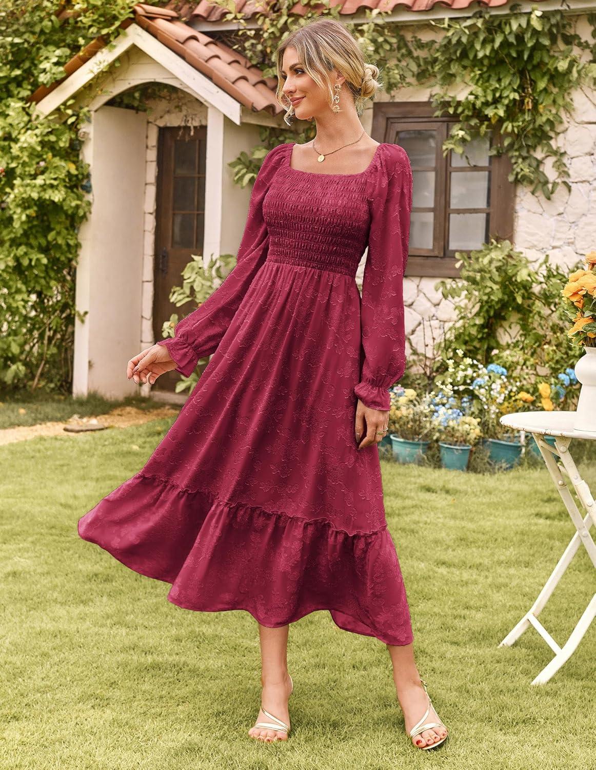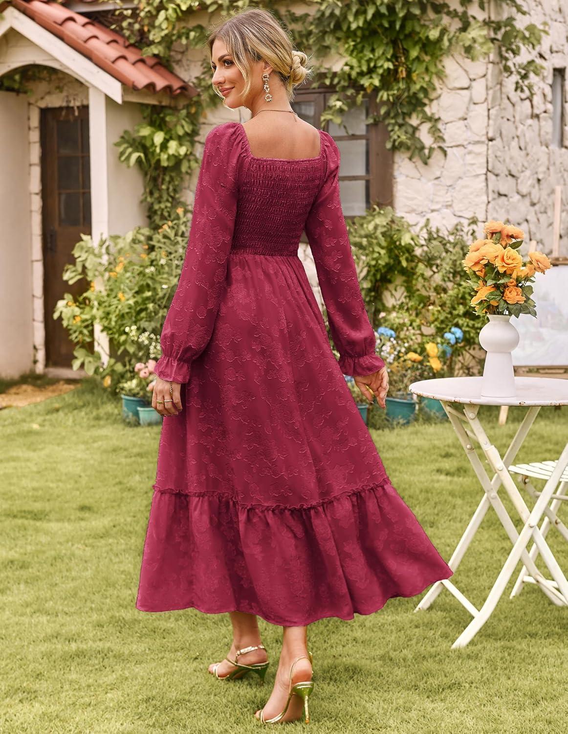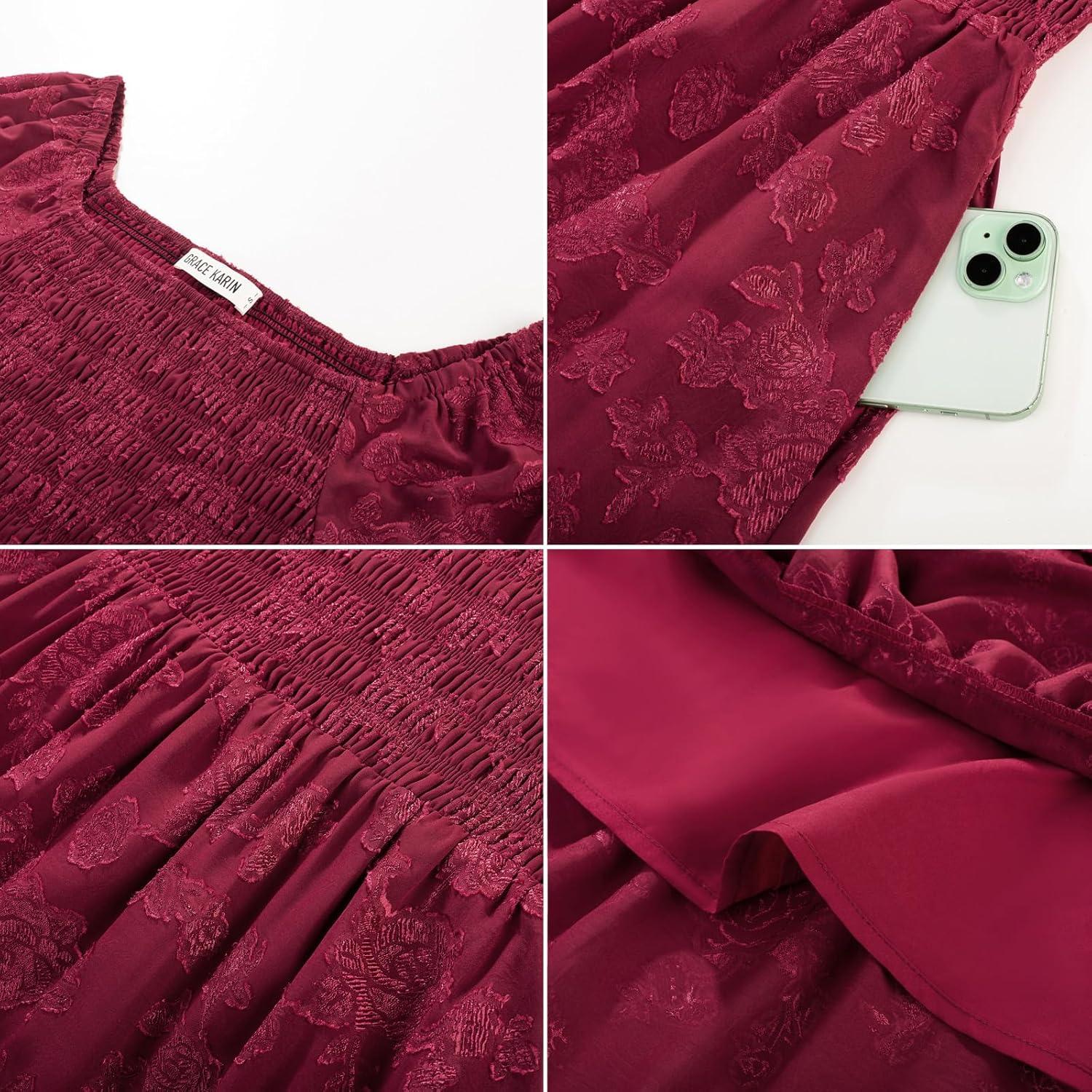 Get up to 60% off on GRACE KARIN Women’s 2025 Fall Long Sleeve Maxi Dress Floral Wedding Guest Dress Smocked Flowy Tiered Dresses with Pockets(Wine Red) styles during our winter sale event.