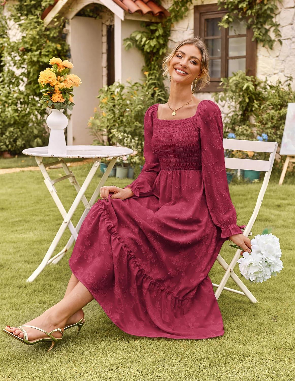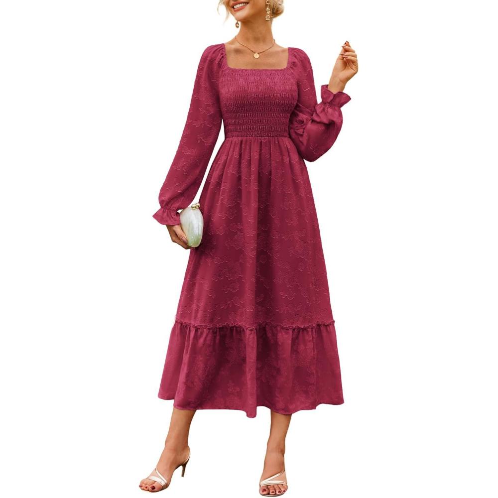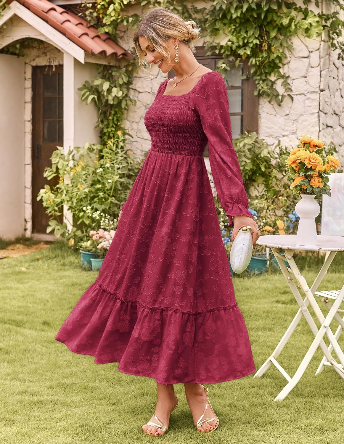 Get up to 60% off on GRACE KARIN Women’s 2025 Fall Long Sleeve Maxi Dress Floral Wedding Guest Dress Smocked Flowy Tiered Dresses with Pockets(Wine Red) styles during our winter sale event.