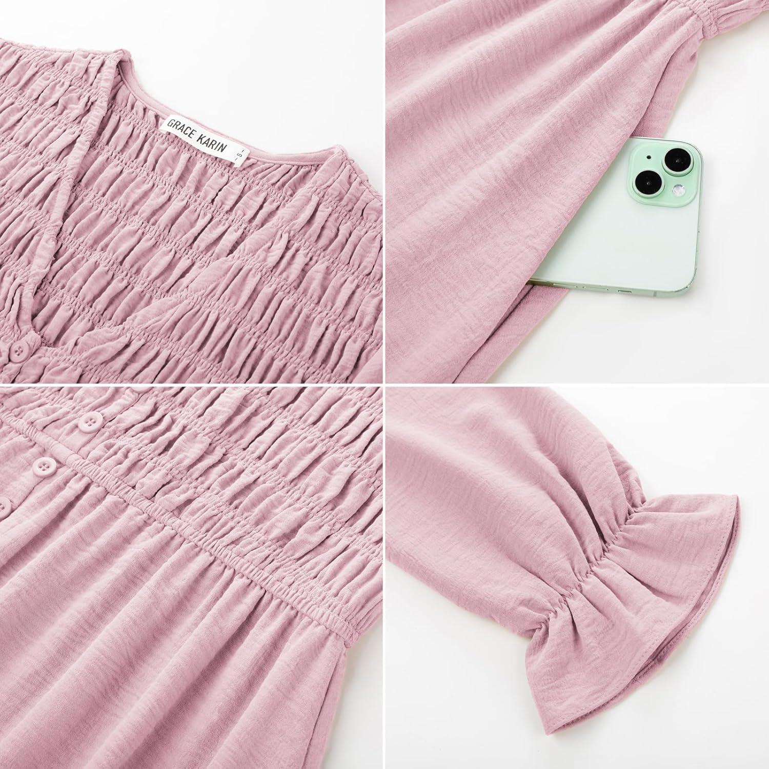 Be the first to review “GRACE KARIN Women’s 2025 Fall Long Sleeve Maxi Dresses Smocked V Neck Flowy Casual Dress with Pockets Wedding Guest(Pink)”