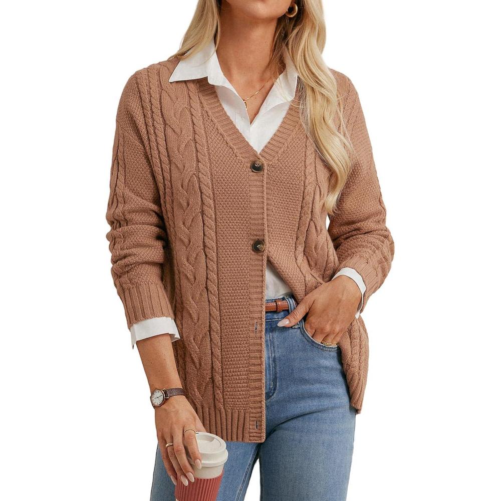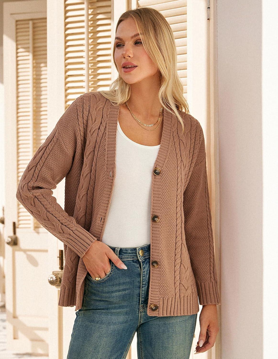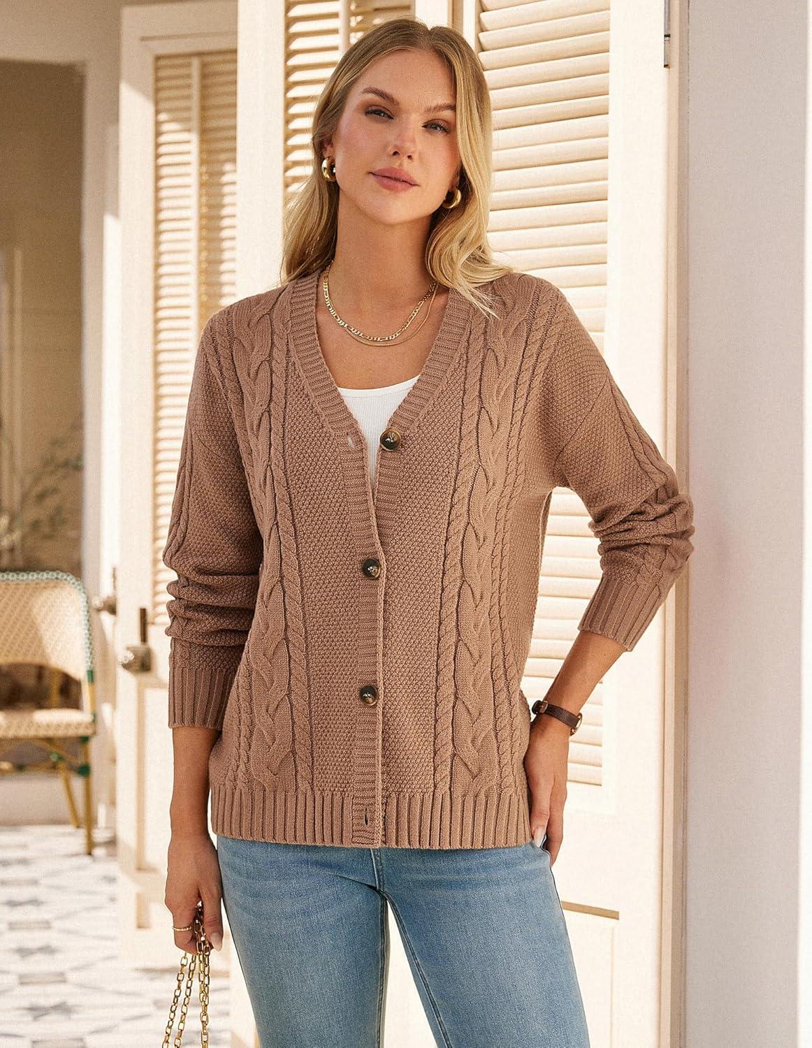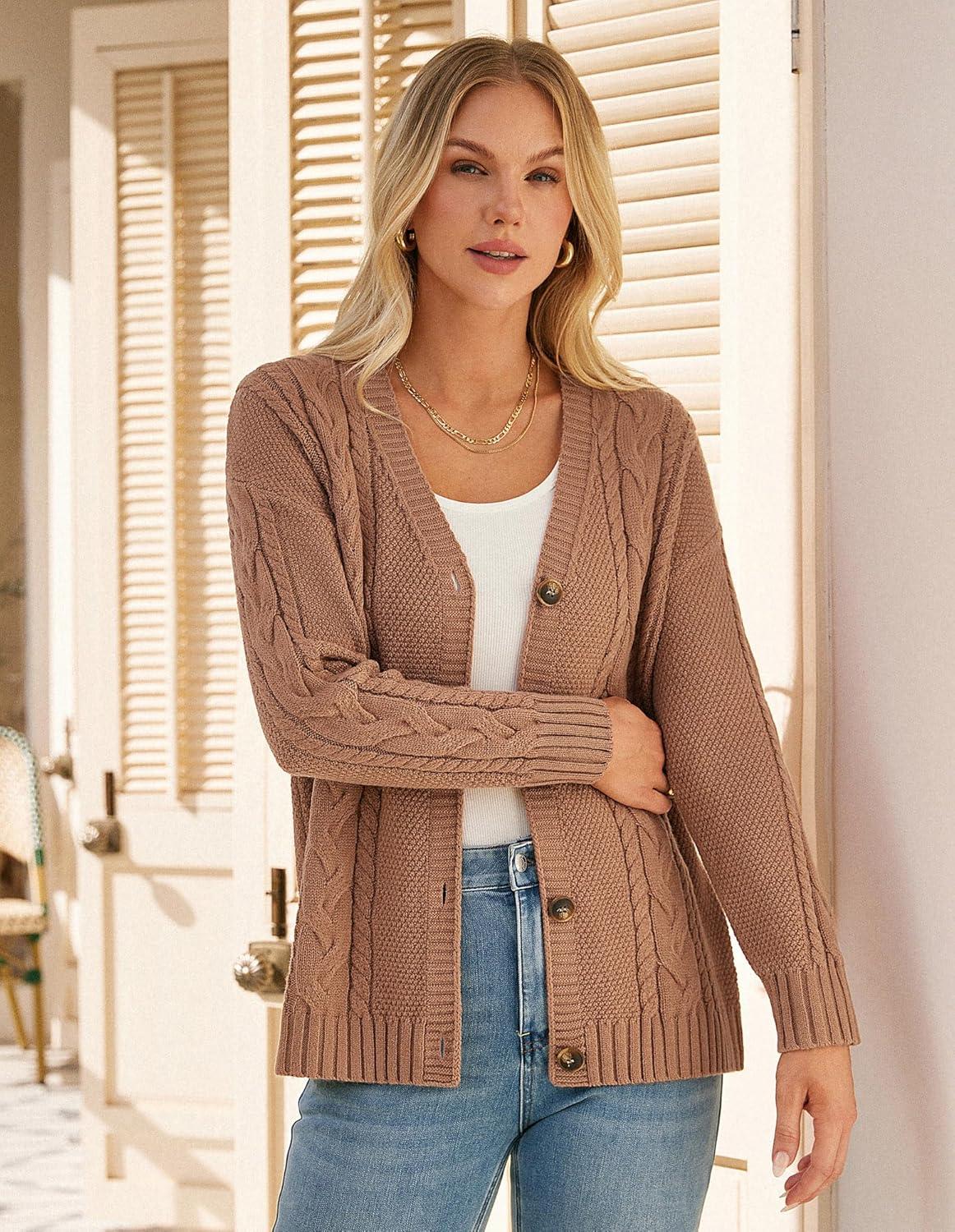GRACE KARIN Women’s 2025 Fall Long Sleeve Sweater Cardigan Chunky Cable Knit Sweater Casual Button Coats Outerwear(Coffee)