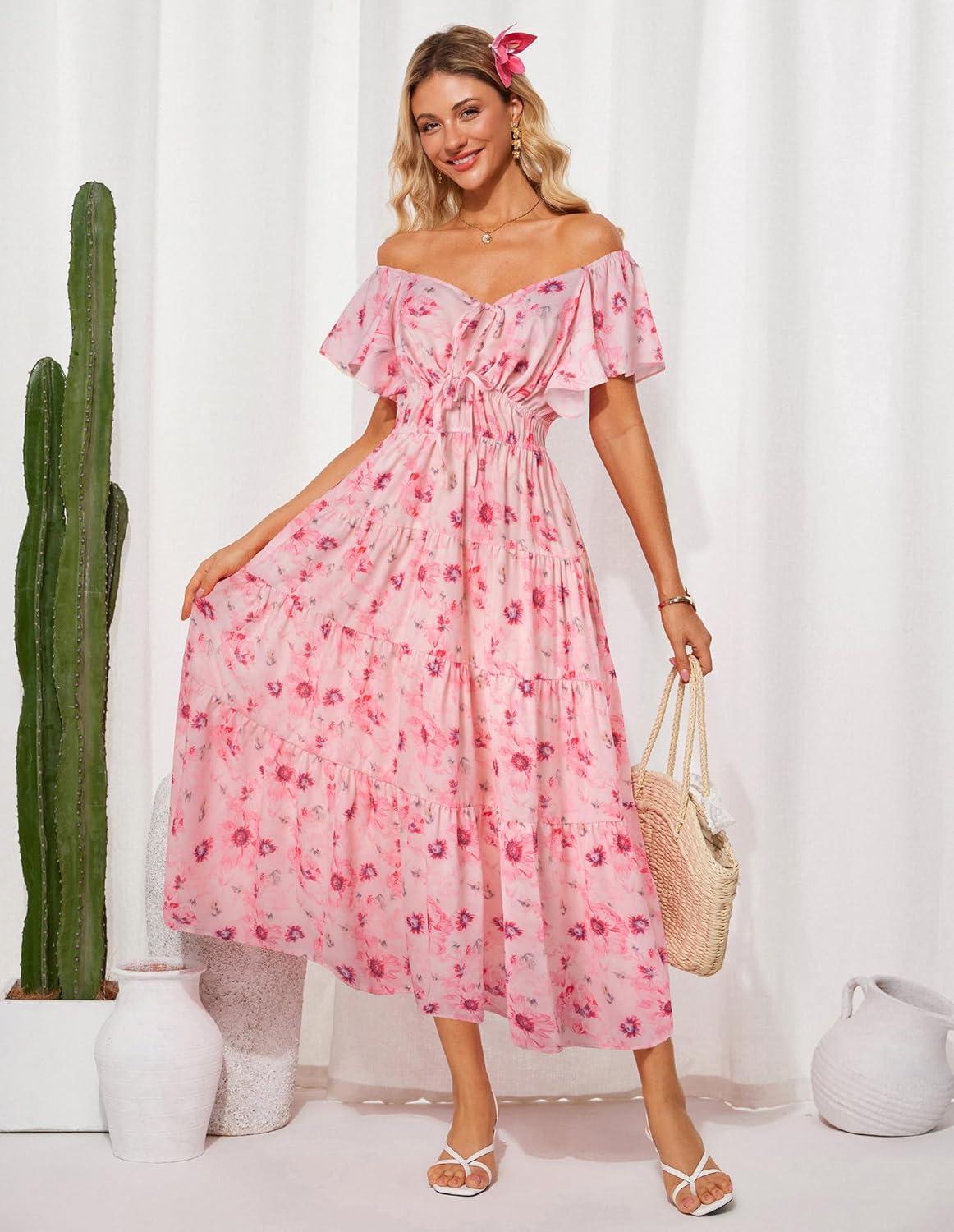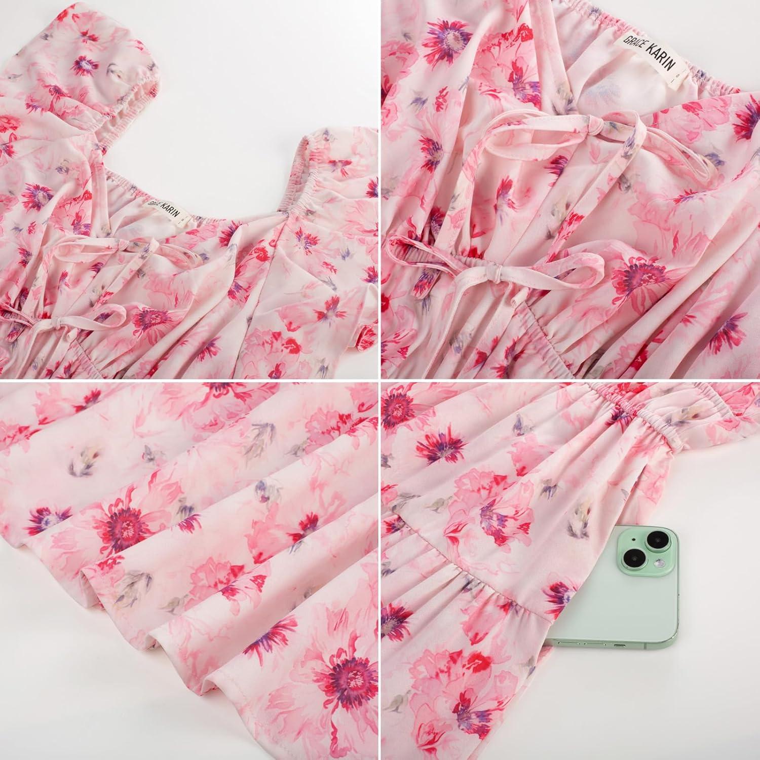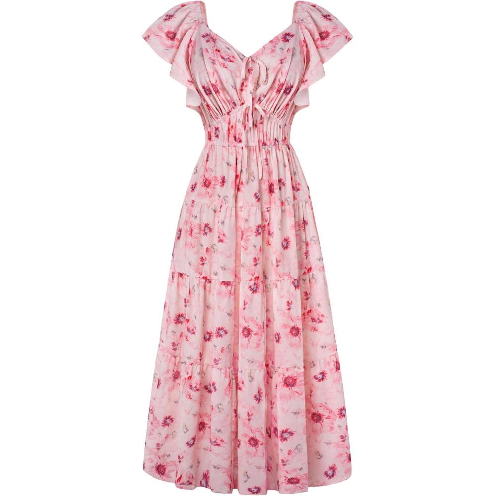 Be the first to review “GRACE KARIN Womens 2025 Floral Summer V-Neck Ruffle Sleeve Empire Waist A-Line Casual Maxi Tiered Dress with Pockets(Pink Flower)”