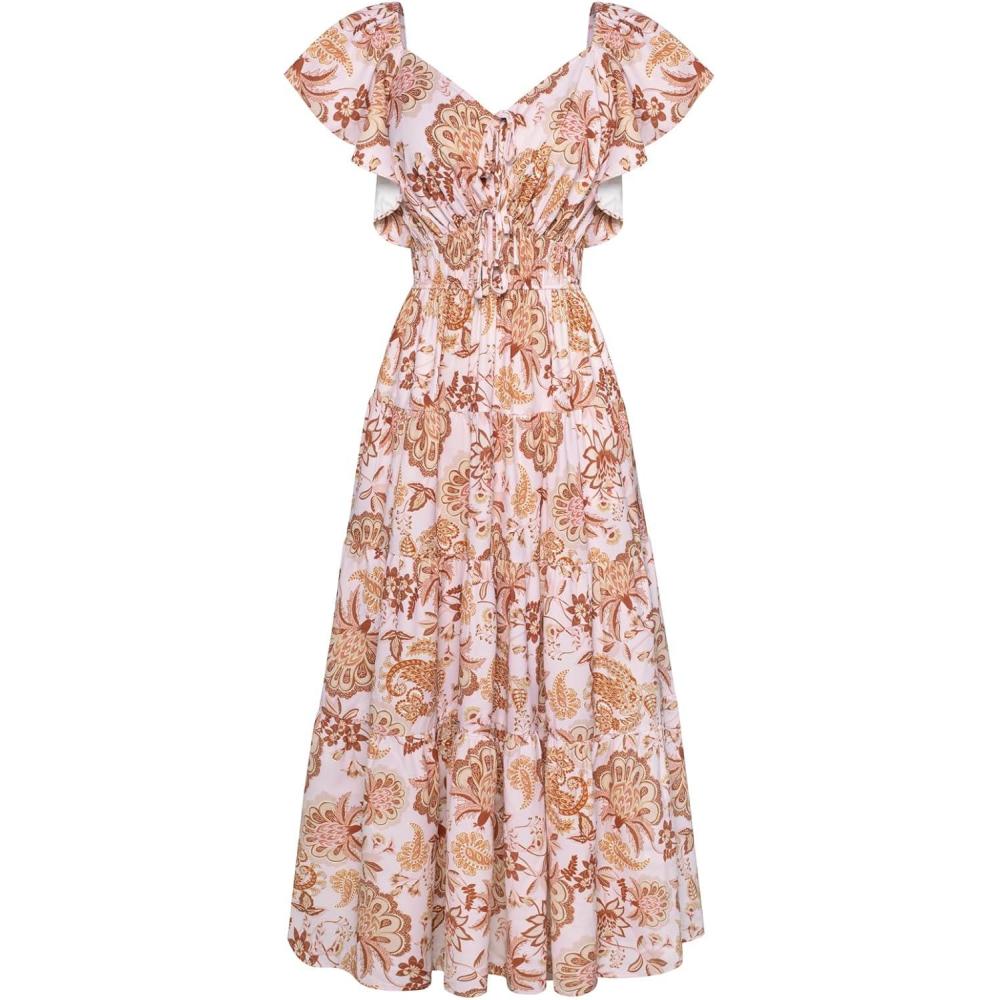 GRACE KARIN Womens 2025 Floral Summer V-Neck Ruffle Sleeve Empire Waist A-Line Casual Maxi Tiered Dress with Pockets(White Yellow Flower)