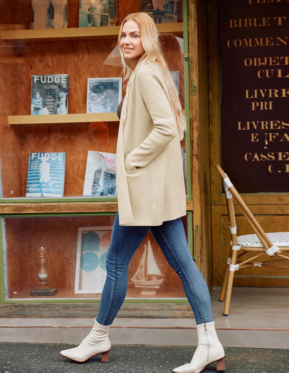 GRACE KARIN Women's 2025 Long Sleeve Open Front Knit Cardigan Notch Collar Sweater Blazer Jacket Fall Winter Clothing(Beige)