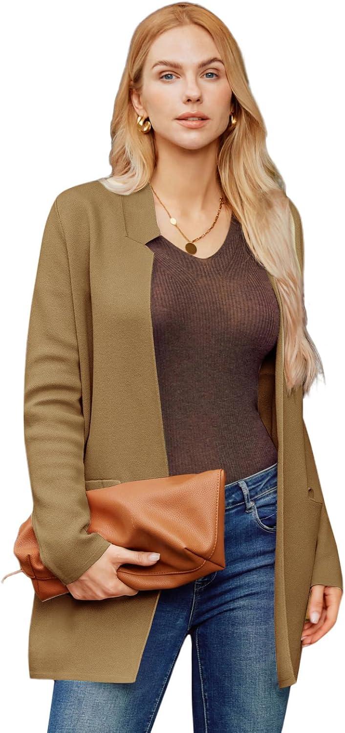 GRACE KARIN Women's 2025 Long Sleeve Open Front Knit Cardigan Notch Collar Sweater Blazer Jacket Fall Winter Clothing(Camel)